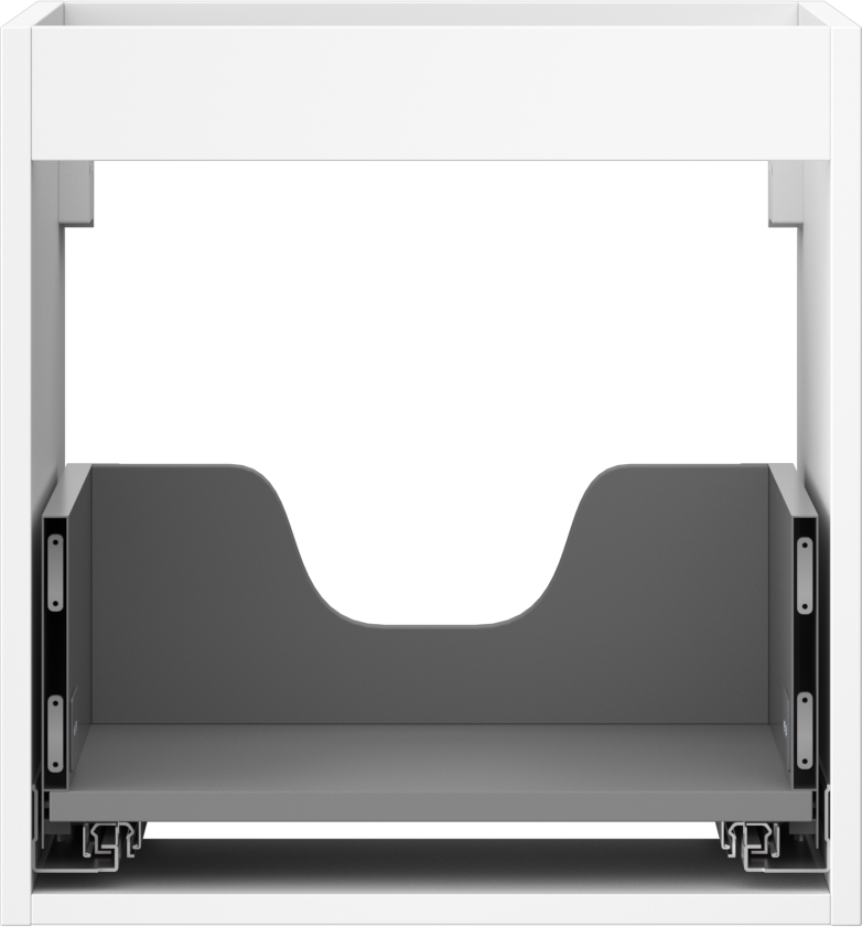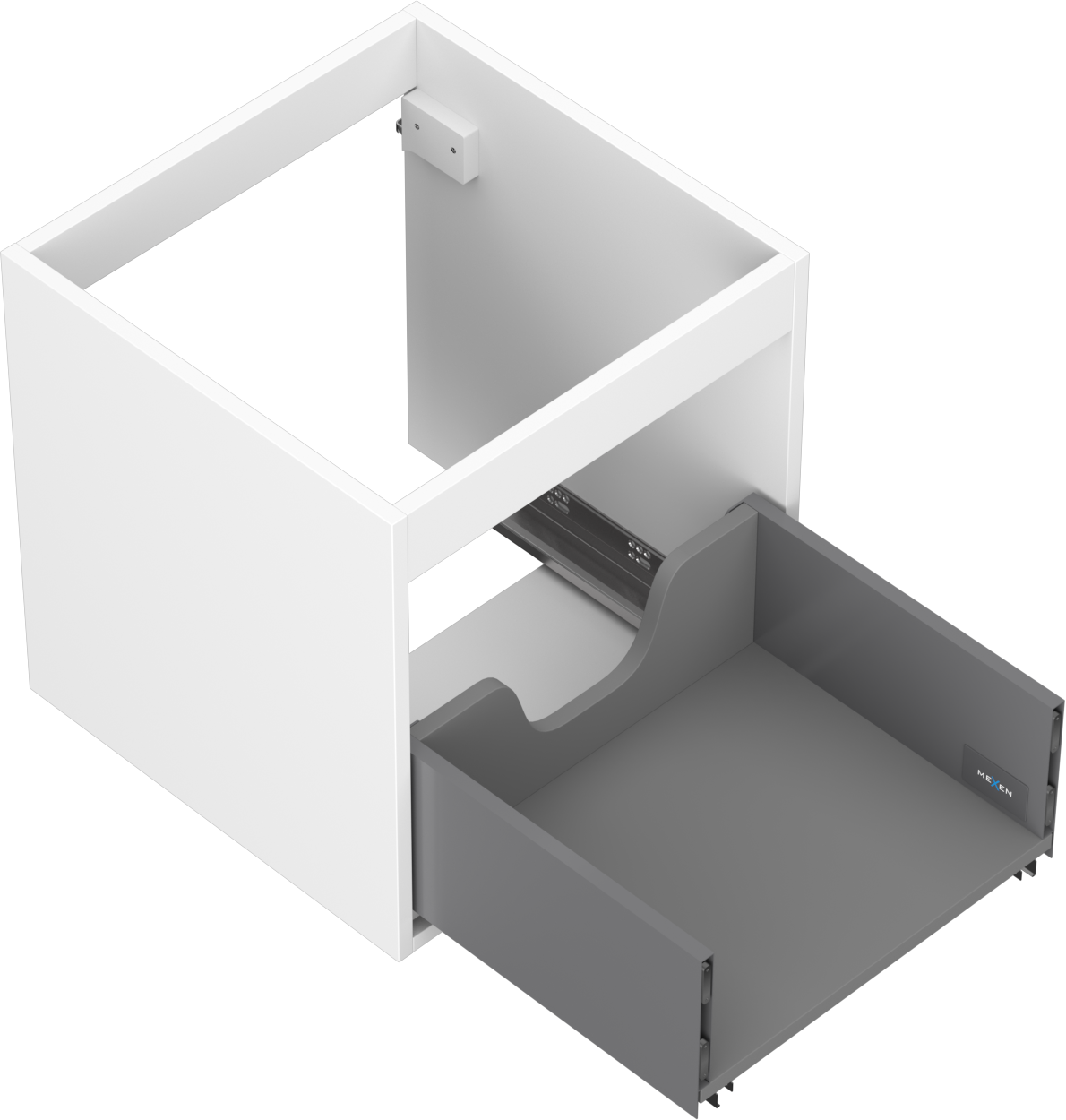 Изрезът в чекмеджето е проектиран по такъв начин, че да побере сифона, който е необходим в мивковите инсталации. Благодарение на това мебелът може да бъде монтиран напълно функционално, без да се налага отказване от пространството в чекмеджето заради инсталацията.