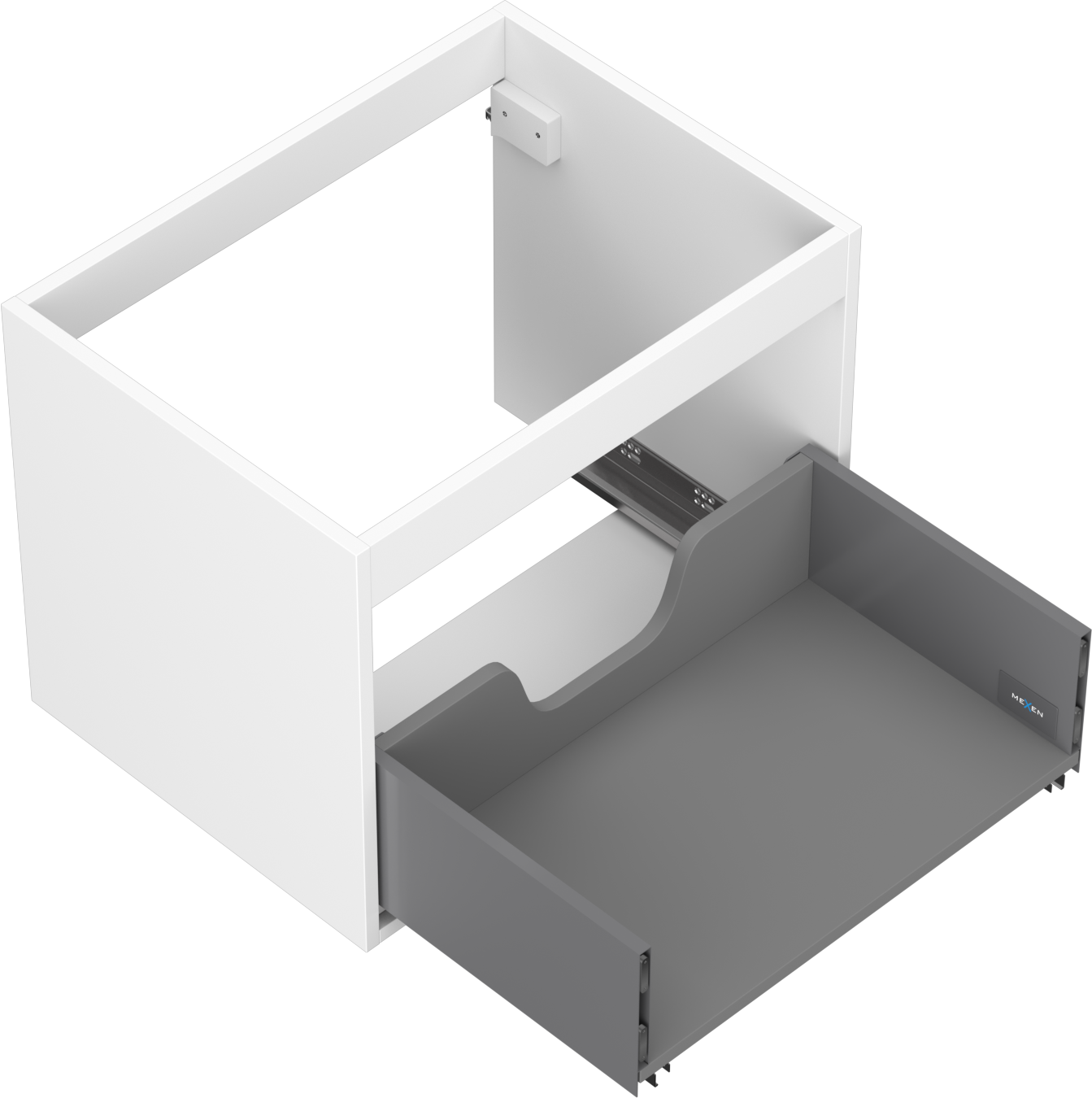 Изрезът в чекмеджето е проектиран по такъв начин, че да побере сифона, който е необходим в мивковите инсталации. Благодарение на това мебелът може да бъде монтиран напълно функционално, без да се налага отказване от пространството в чекмеджето заради инсталацията.