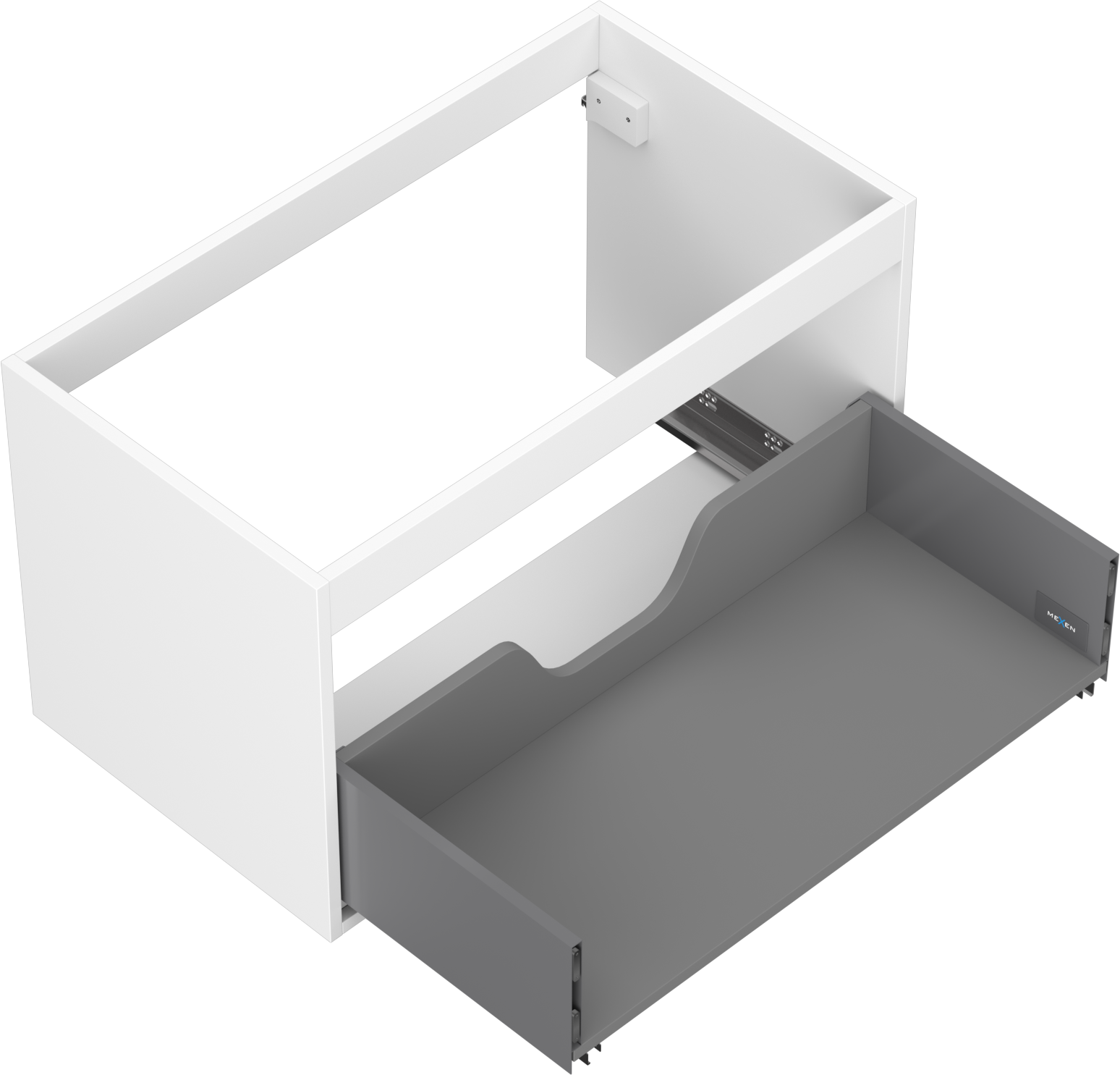 Изрезът в чекмеджето е проектиран по такъв начин, че да побере сифона, който е необходим в мивковите инсталации. Благодарение на това мебелът може да бъде монтиран напълно функционално, без да се налага отказване от пространството в чекмеджето заради инсталацията.