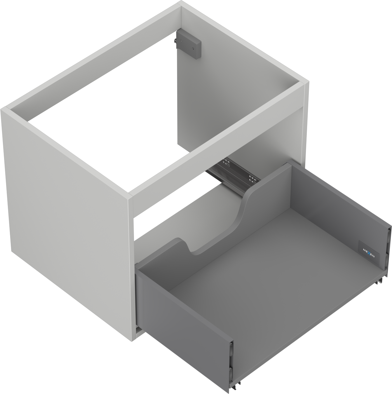 Изрезът в чекмеджето е проектиран по такъв начин, че да побере сифона, който е необходим в мивковите инсталации. Благодарение на това мебелът може да бъде монтиран напълно функционално, без да се налага отказване от пространството в чекмеджето заради инсталацията.