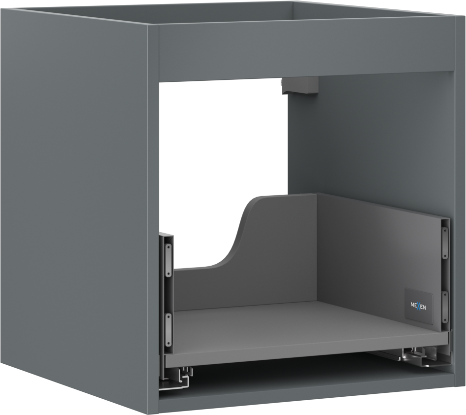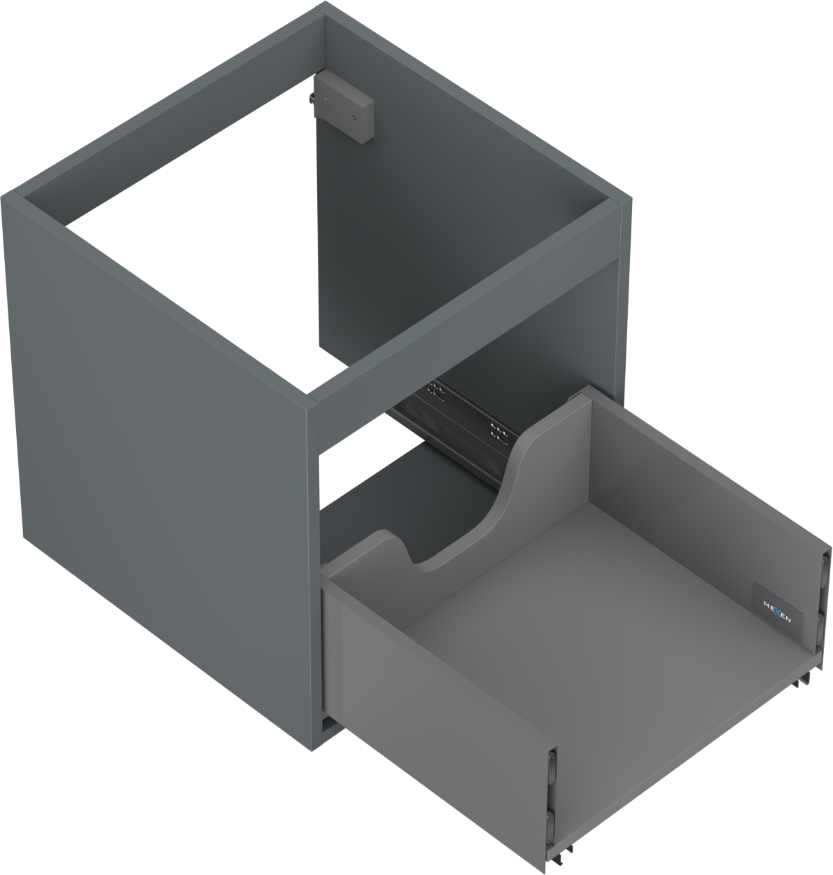 Изрезът в чекмеджето е проектиран по такъв начин, че да побере сифона, който е необходим в мивковите инсталации. Благодарение на това мебелът може да бъде монтиран напълно функционално, без да се налага отказване от пространството в чекмеджето заради инсталацията.