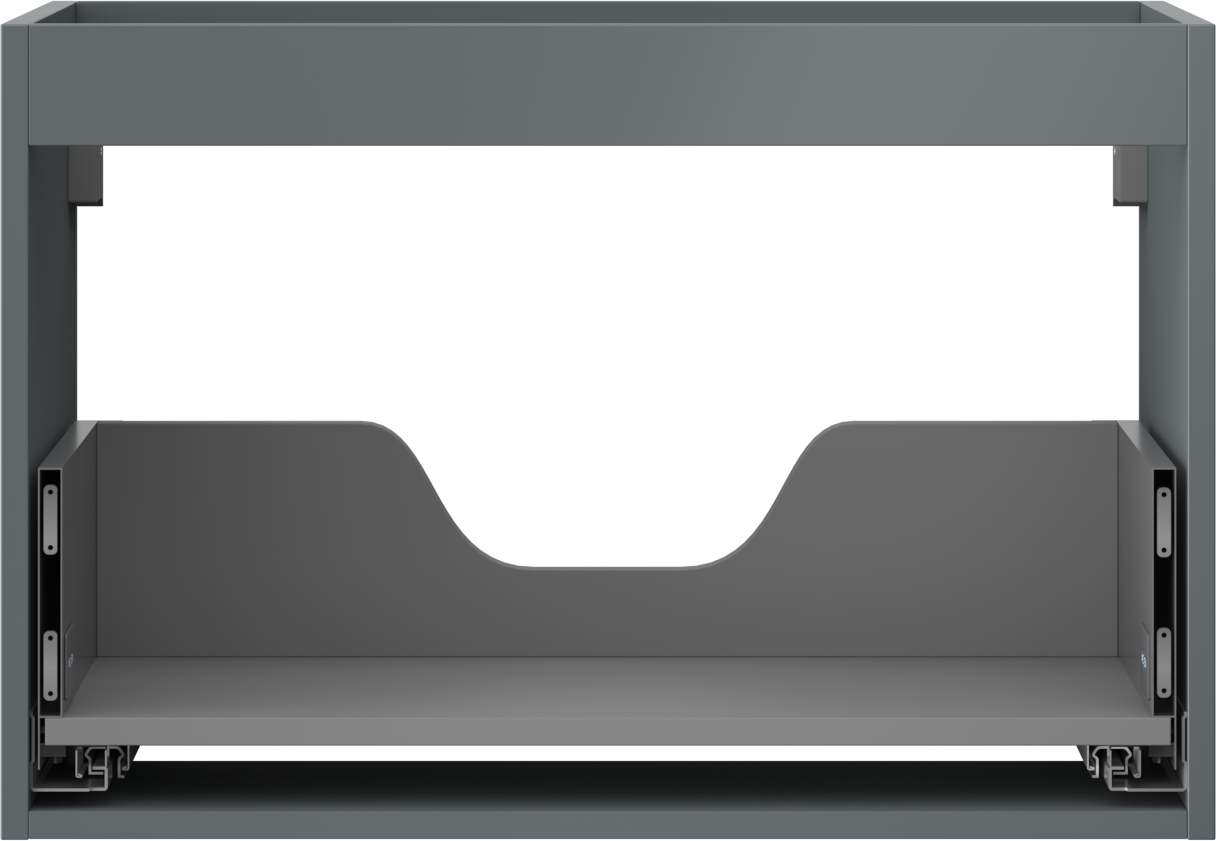 Изрезът в чекмеджето е предназначен за поставяне на сифона, който е от съществено значение за инсталациите на умивалника. Това позволява на мебелта да се монтира по напълно функционален начин, без да се налага да се отделя място в чекмеджето за инсталацията.
