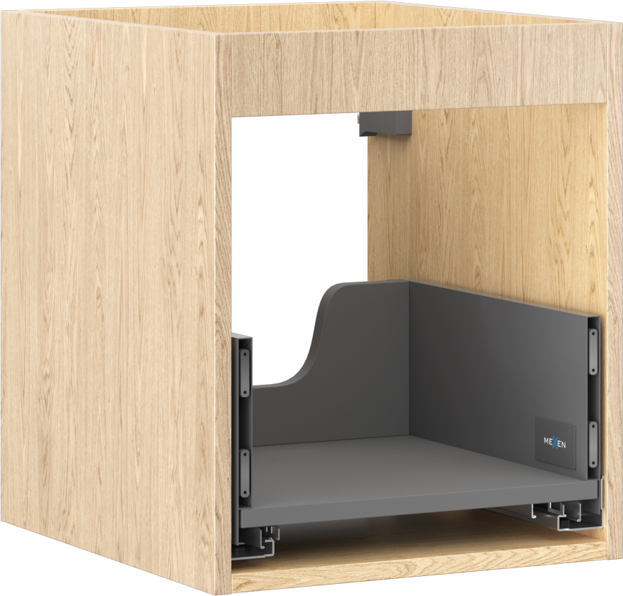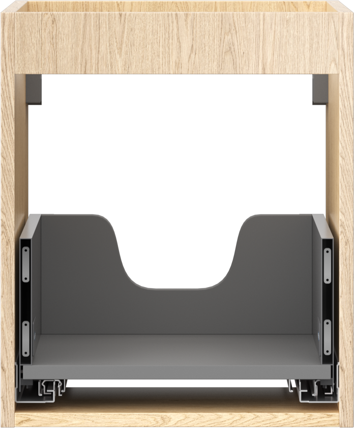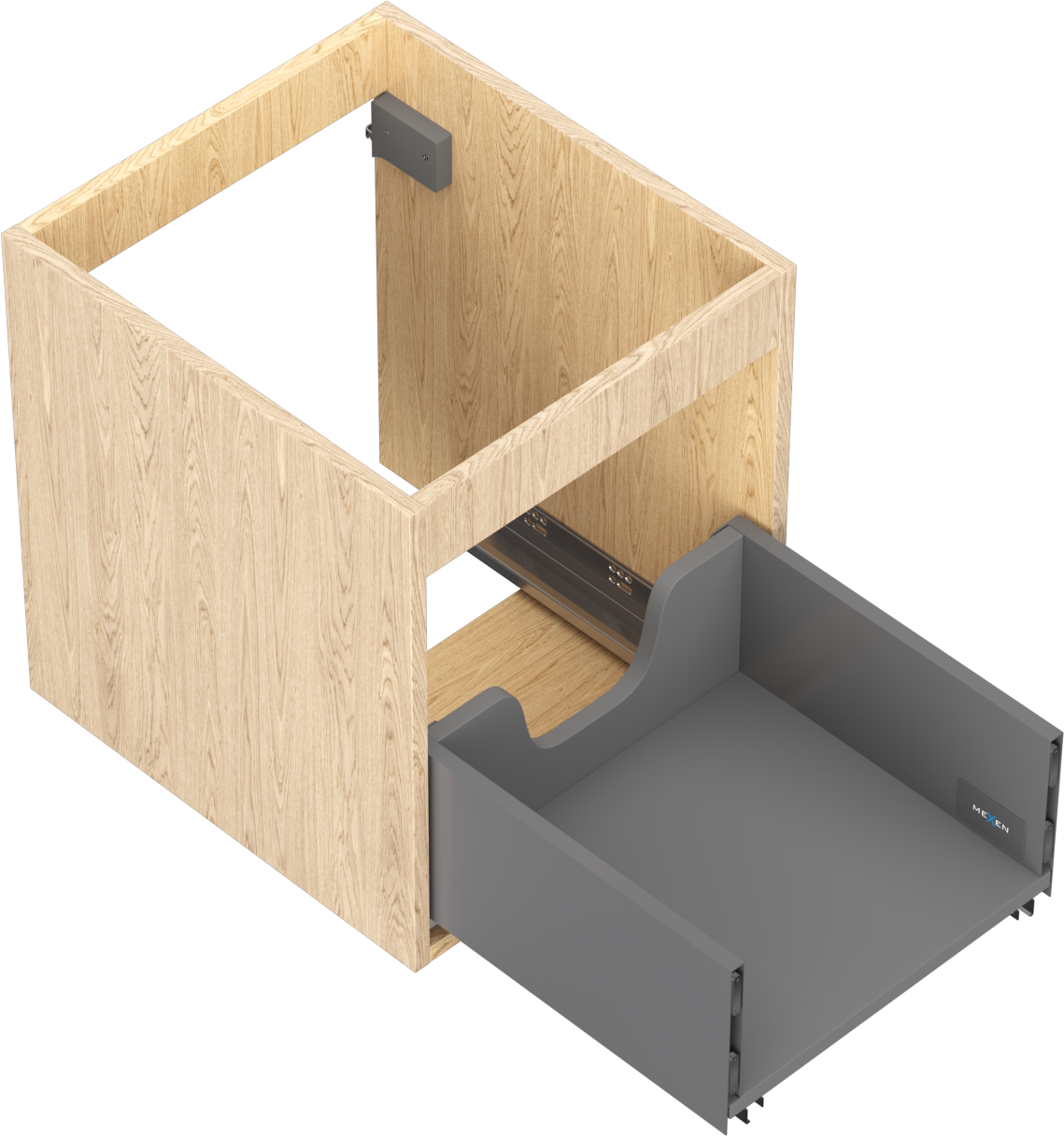Изрезът в чекмеджето е проектиран по такъв начин, че да побере сифона, който е необходим в мивковите инсталации. Благодарение на това мебелът може да бъде монтиран напълно функционално, без да се налага отказване от пространството в чекмеджето заради инсталацията.