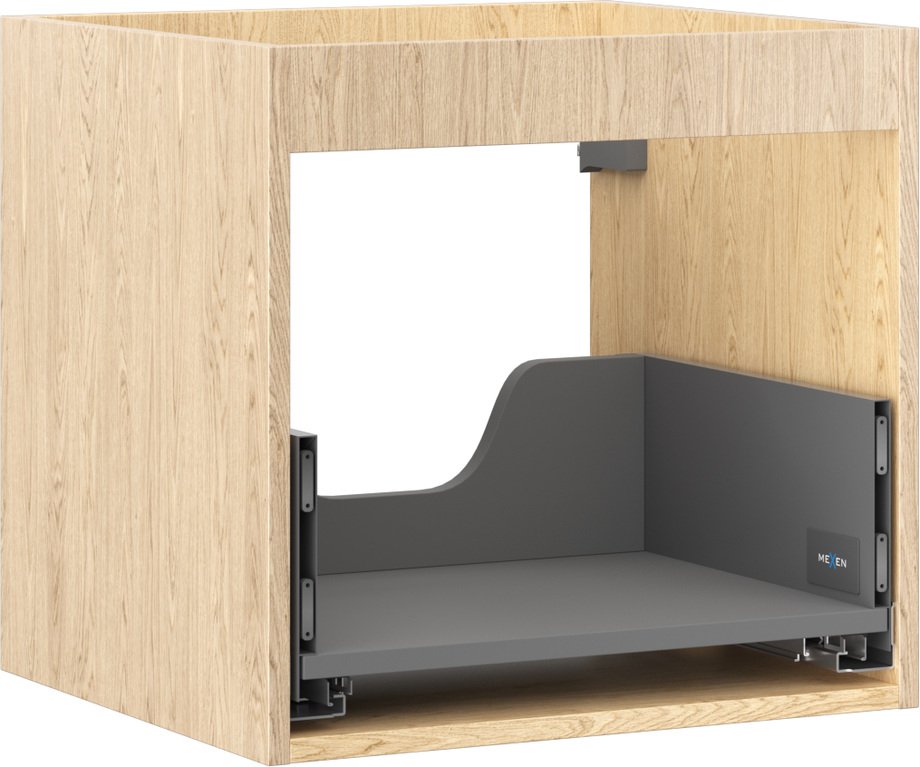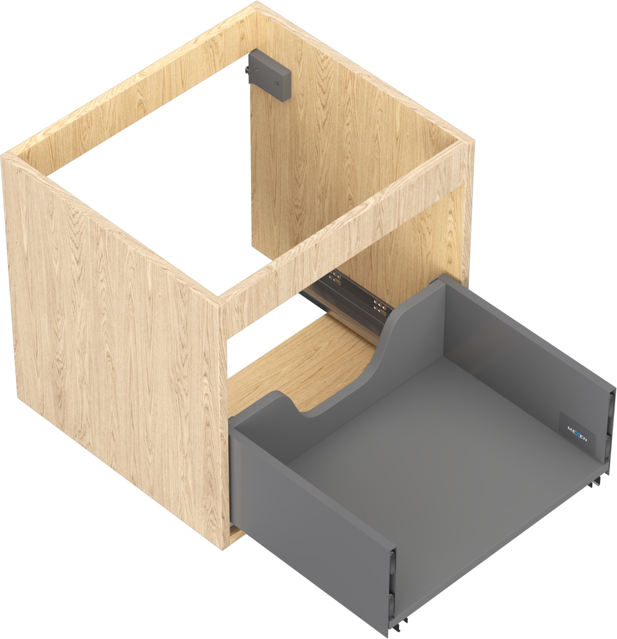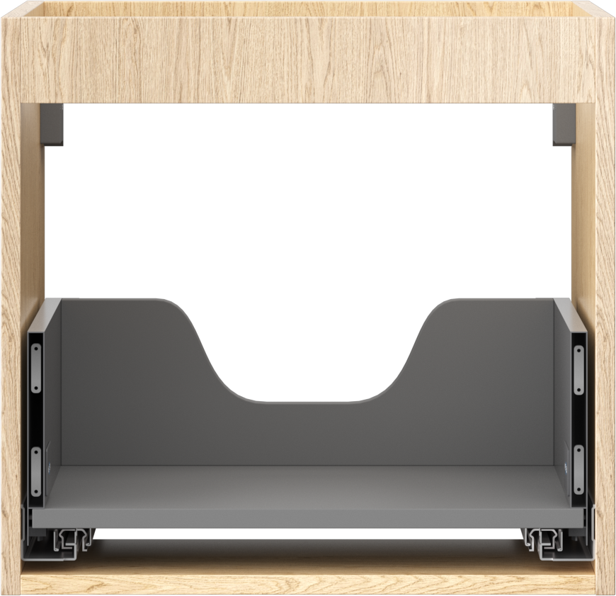 Изрезът в чекмеджето е проектиран по такъв начин, че да побере сифона, който е необходим в мивковите инсталации. Благодарение на това мебелът може да бъде монтиран напълно функционално, без да се налага отказване от пространството в чекмеджето заради инсталацията.