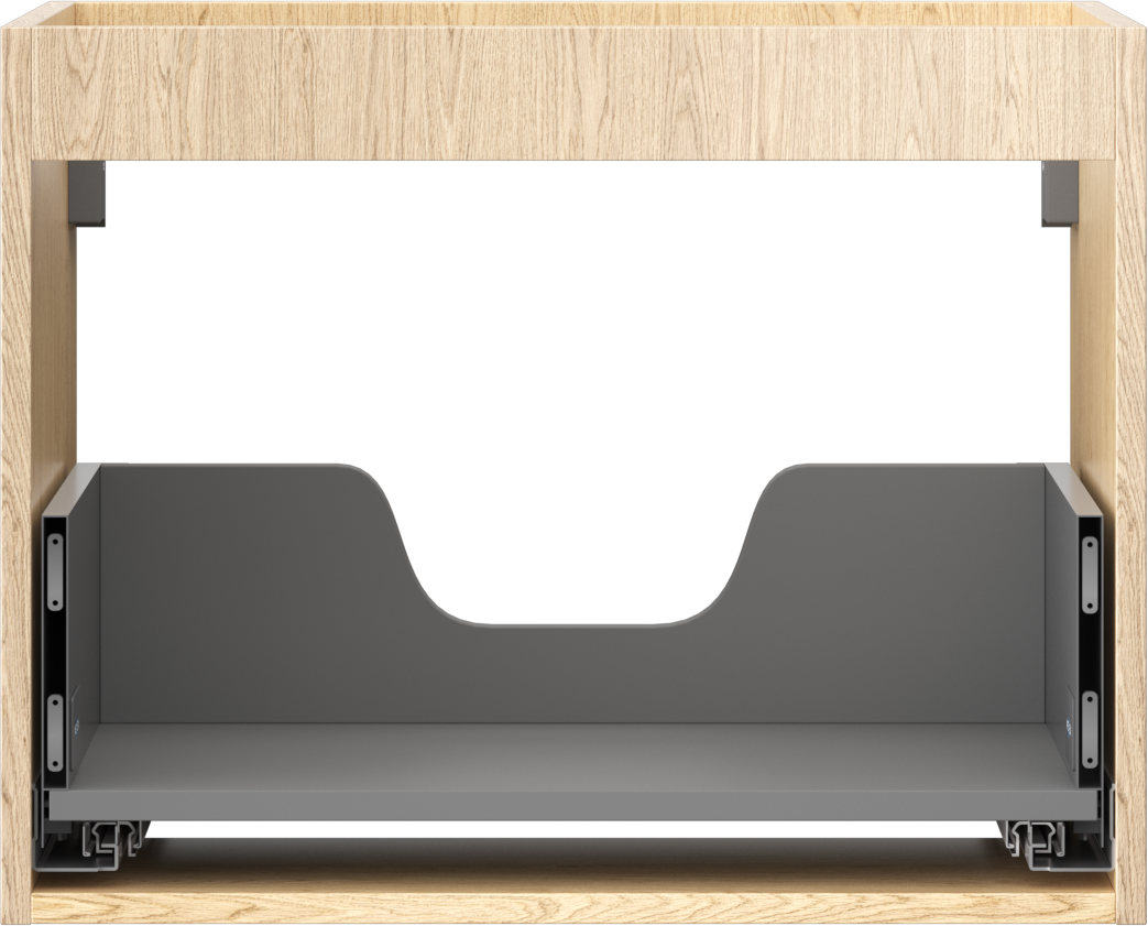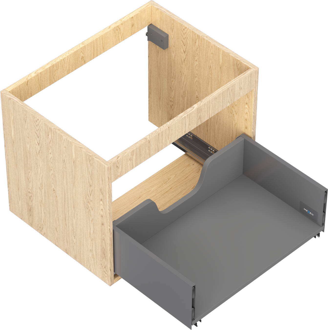 Изрезът в чекмеджето е проектиран по такъв начин, че да побере сифона, който е необходим в мивковите инсталации. Благодарение на това мебелът може да бъде монтиран напълно функционално, без да се налага отказване от пространството в чекмеджето заради инсталацията.