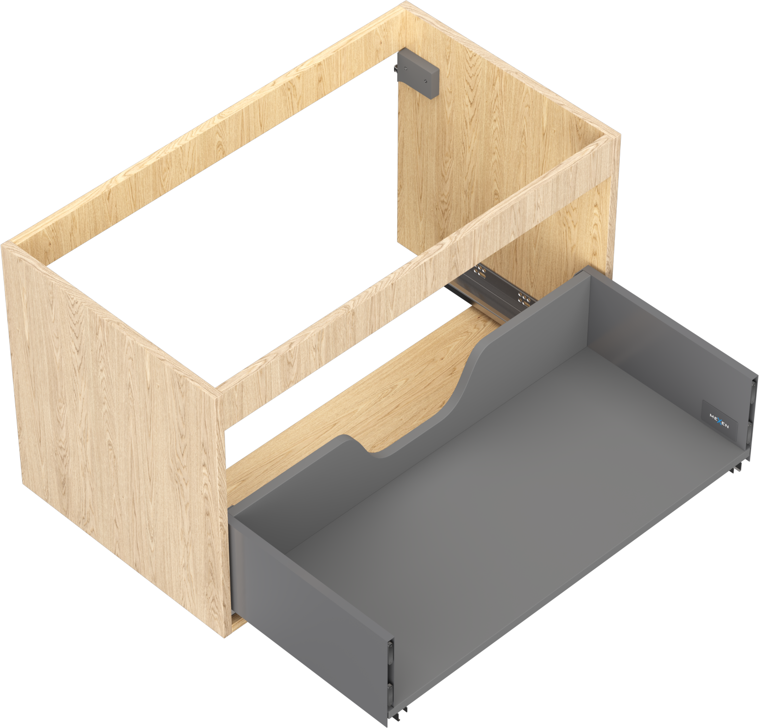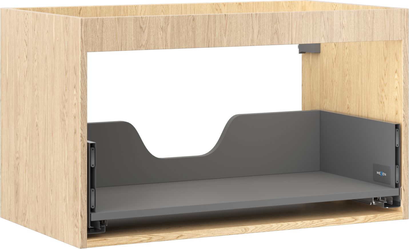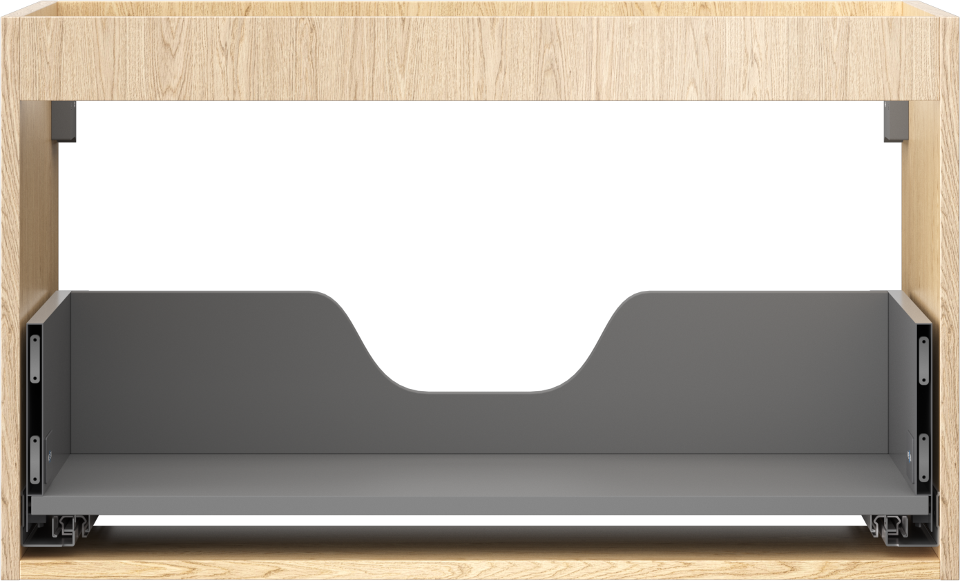 Изрезът в чекмеджето е проектиран по такъв начин, че да побере сифона, който е необходим в мивковите инсталации. Благодарение на това мебелът може да бъде монтиран напълно функционално, без да се налага отказване от пространството в чекмеджето заради инсталацията.