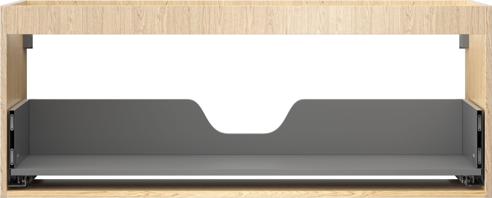 Изрезът в чекмеджето е проектиран по такъв начин, че да побере сифона, който е необходим в мивковите инсталации. Благодарение на това мебелът може да бъде монтиран напълно функционално, без да се налага отказване от пространството в чекмеджето заради инсталацията.
