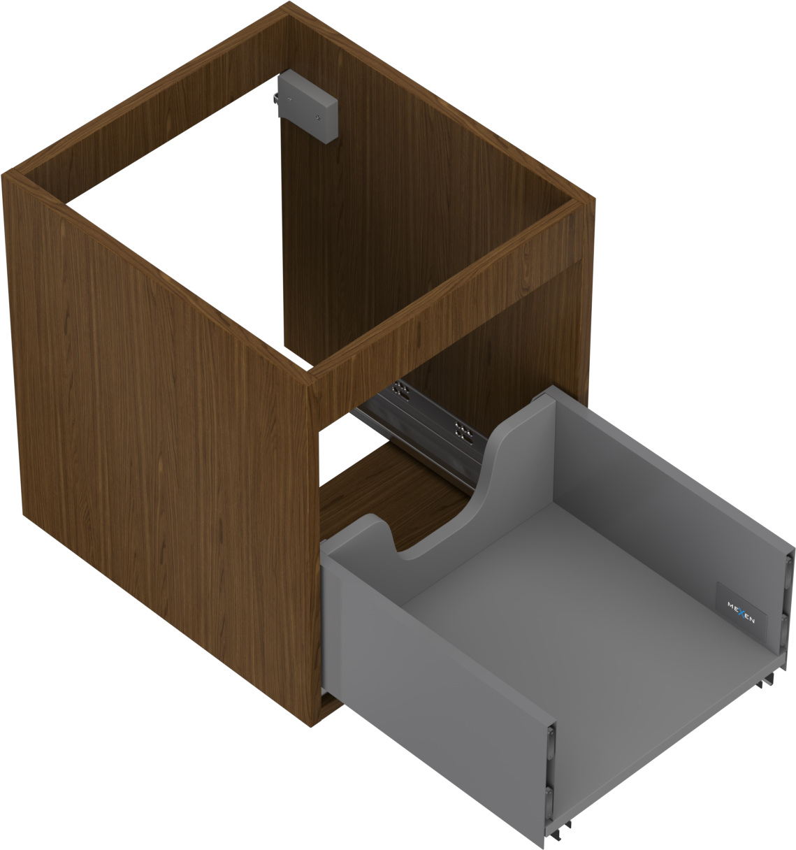 Изрезът в чекмеджето е проектиран по такъв начин, че да побере сифона, който е необходим в мивковите инсталации. Благодарение на това мебелът може да бъде монтиран напълно функционално, без да се налага отказване от пространството в чекмеджето заради инсталацията.