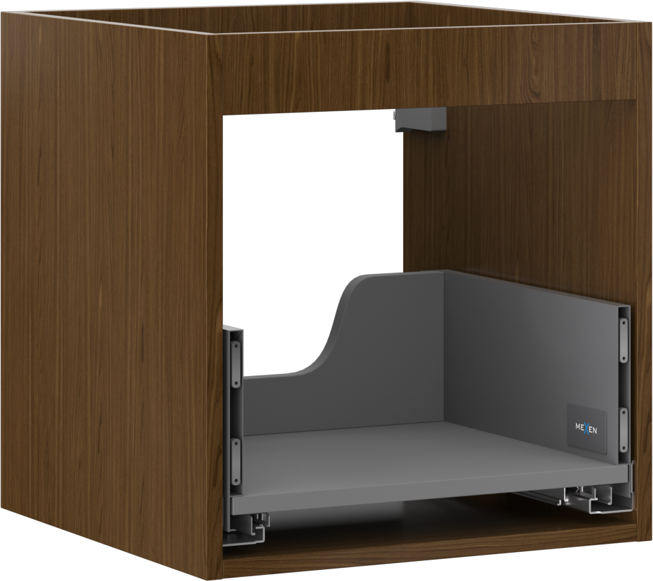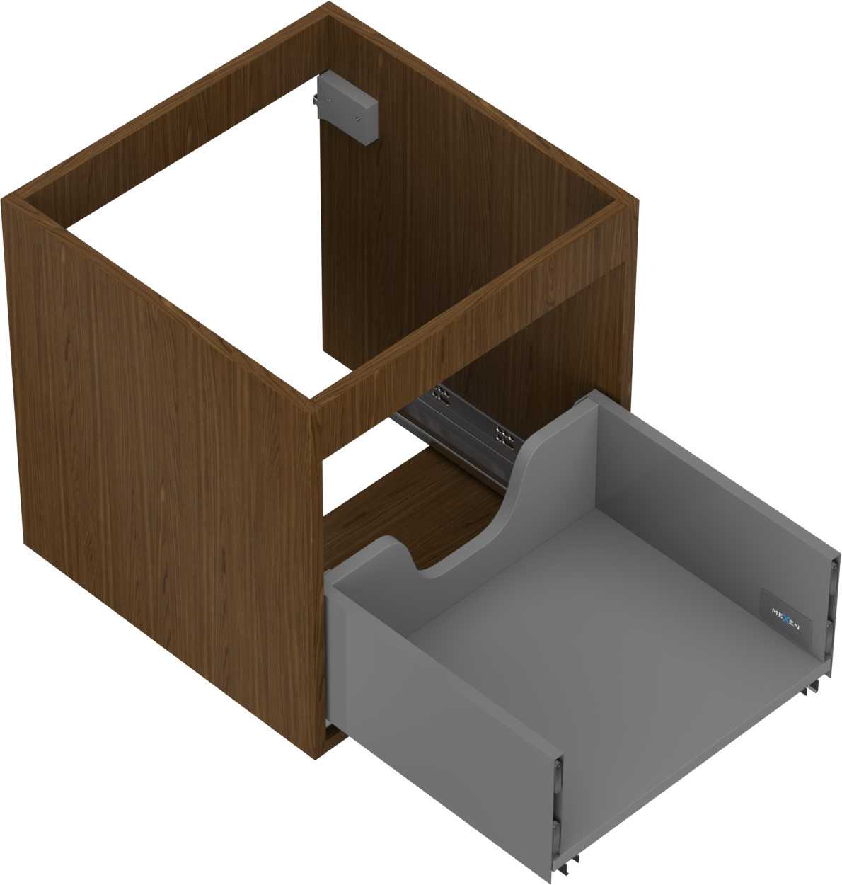 Изрезът в чекмеджето е проектиран по такъв начин, че да побере сифона, който е необходим в мивковите инсталации. Благодарение на това мебелът може да бъде монтиран напълно функционално, без да се налага отказване от пространството в чекмеджето заради инсталацията.