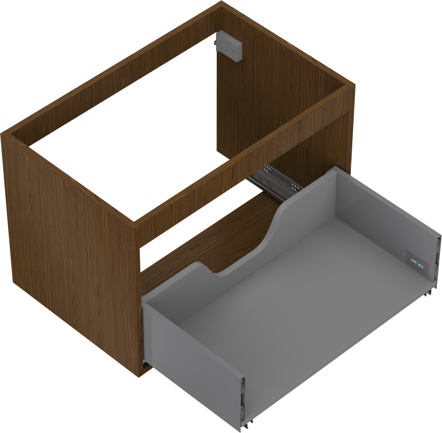 Изрезът в чекмеджето е проектиран по такъв начин, че да побере сифона, който е необходим в мивковите инсталации. Благодарение на това мебелът може да бъде монтиран напълно функционално, без да се налага отказване от пространството в чекмеджето заради инсталацията.