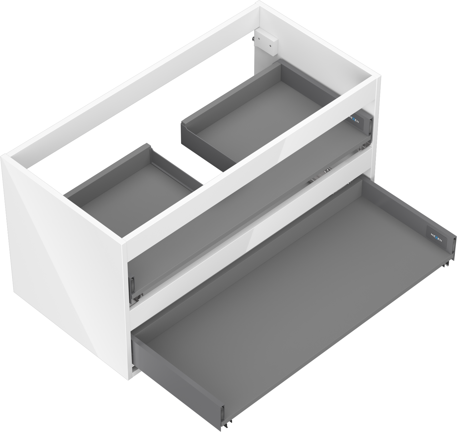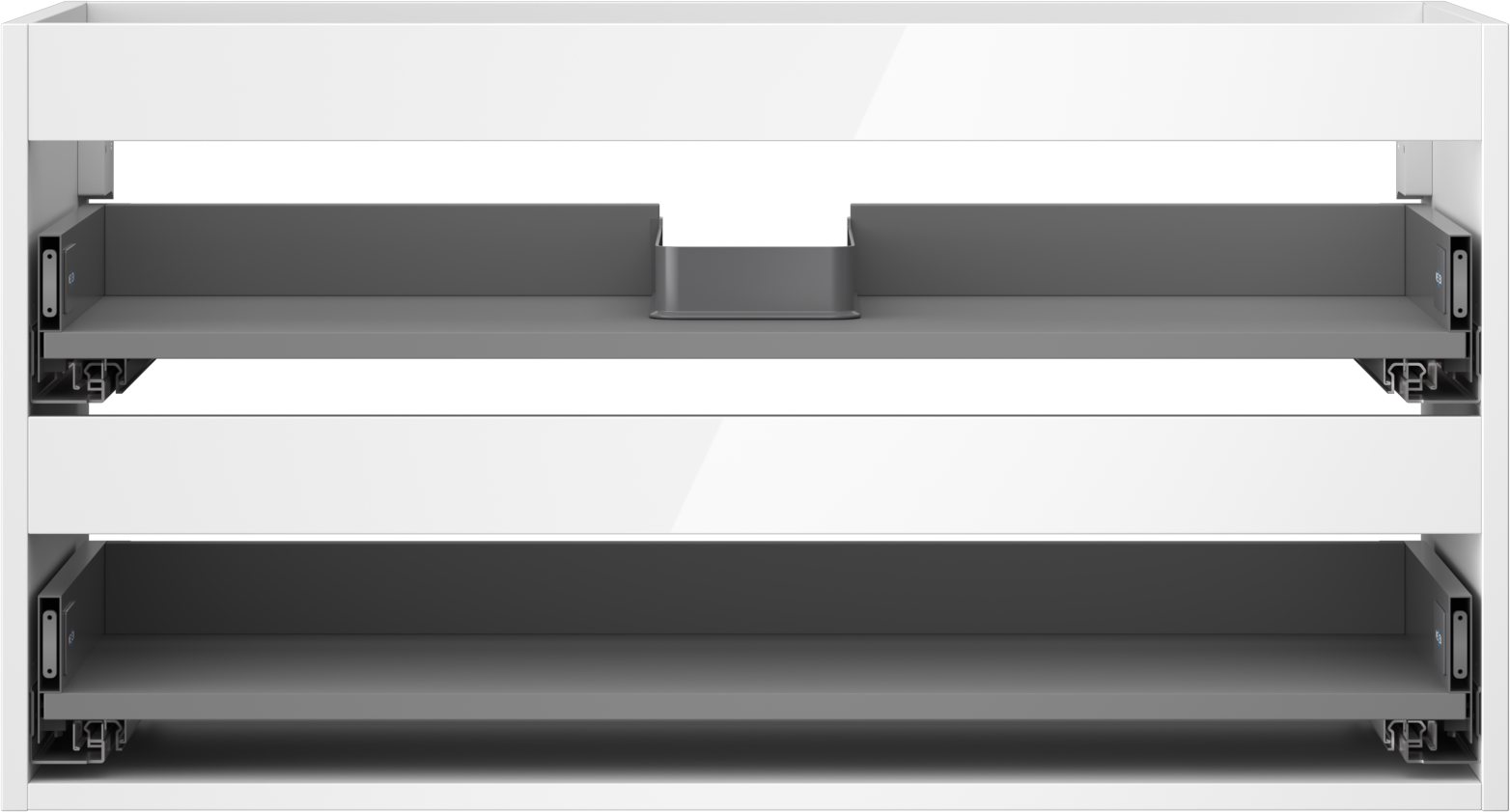 Изрезът в чекмеджето е проектиран по такъв начин, че да побере сифона, който е необходим в мивковите инсталации. Благодарение на това мебелът може да бъде монтиран напълно функционално, без да се налага отказване от пространството в чекмеджето заради инсталацията.