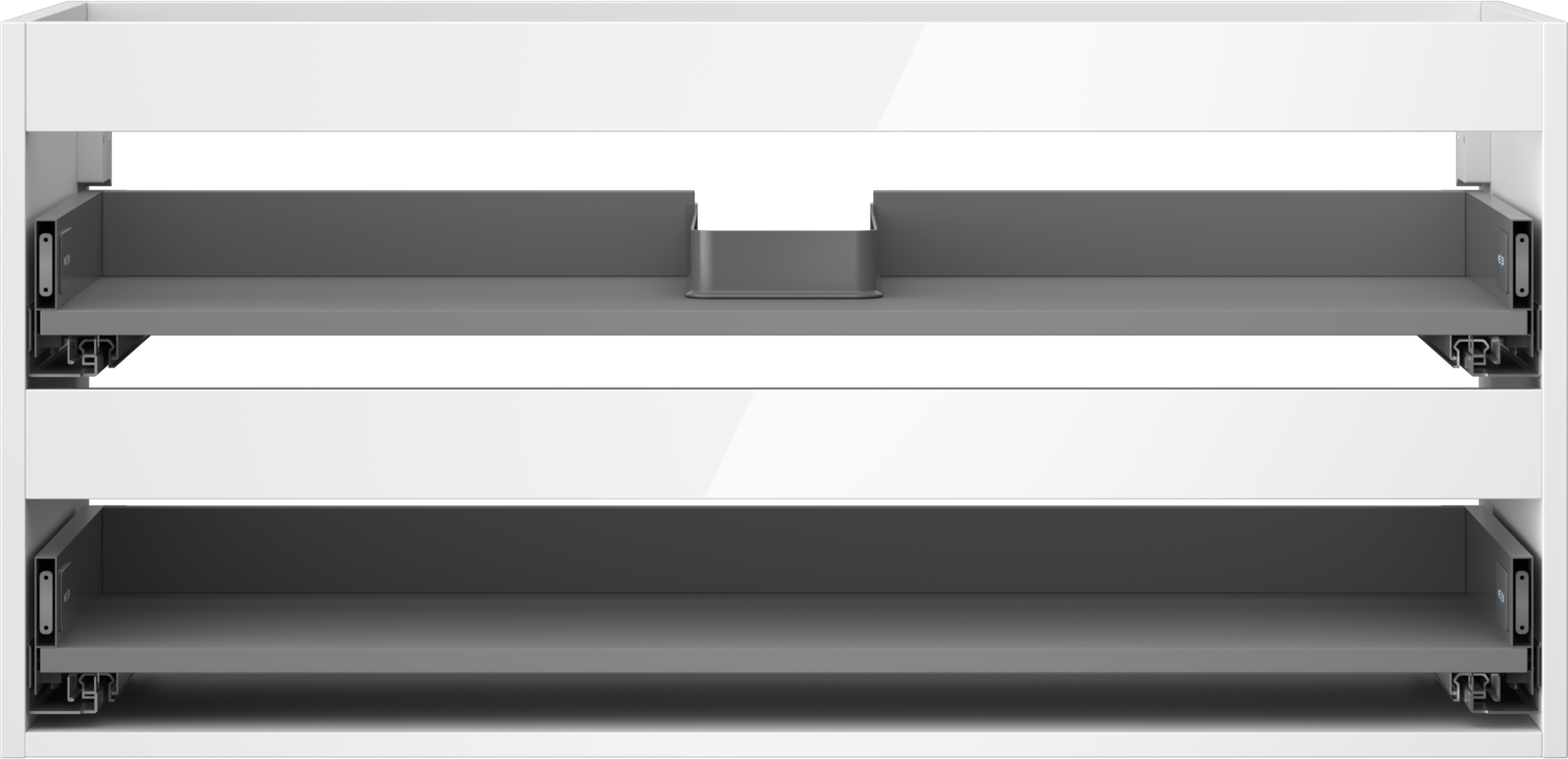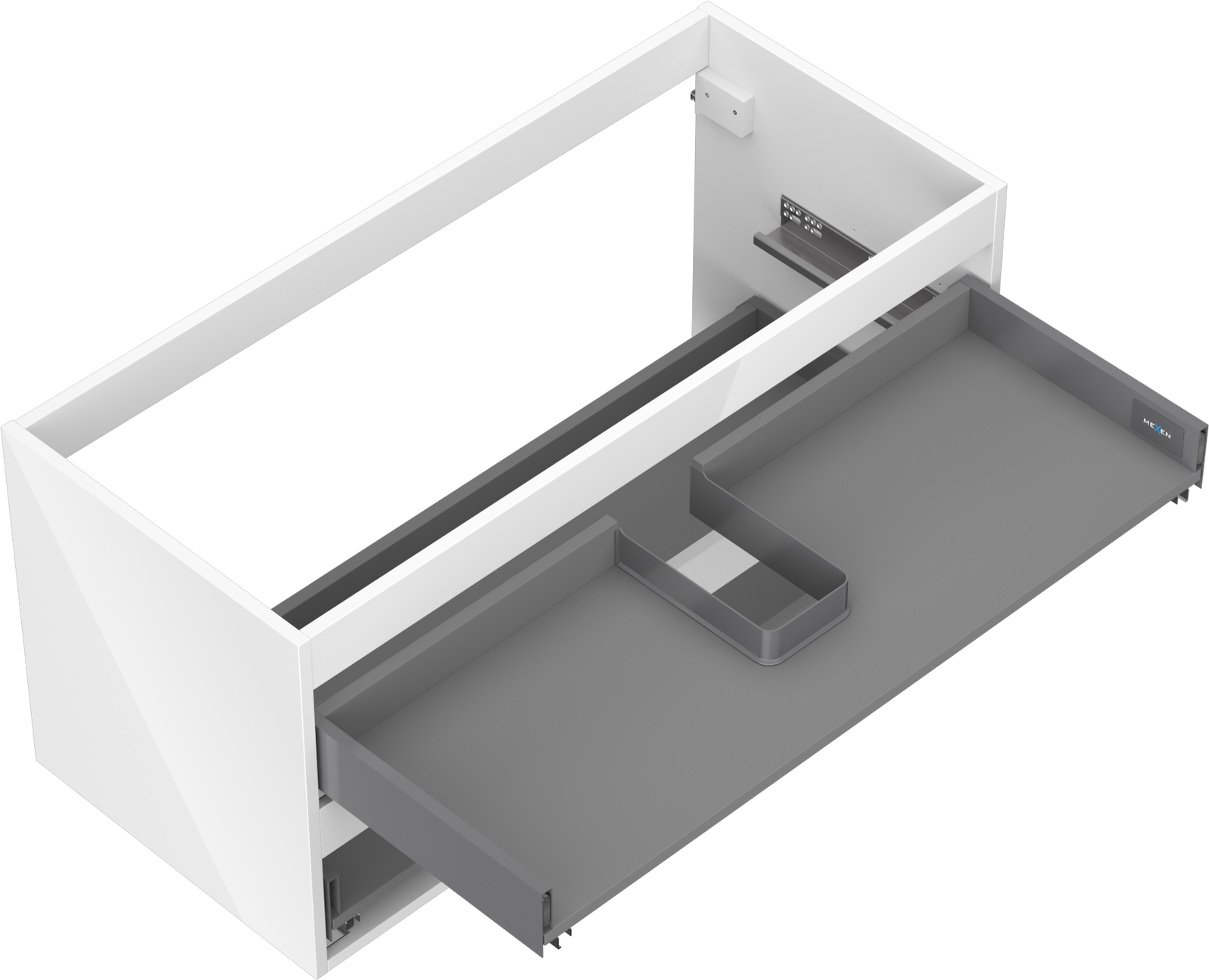 Изрезът в чекмеджето е проектиран по такъв начин, че да побере сифона, който е необходим в мивковите инсталации. Благодарение на това мебелът може да бъде монтиран напълно функционално, без да се налага отказване от пространството в чекмеджето заради инсталацията.