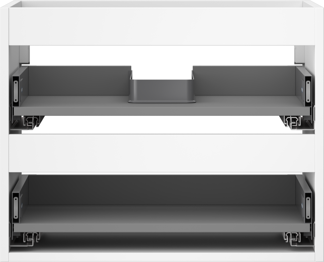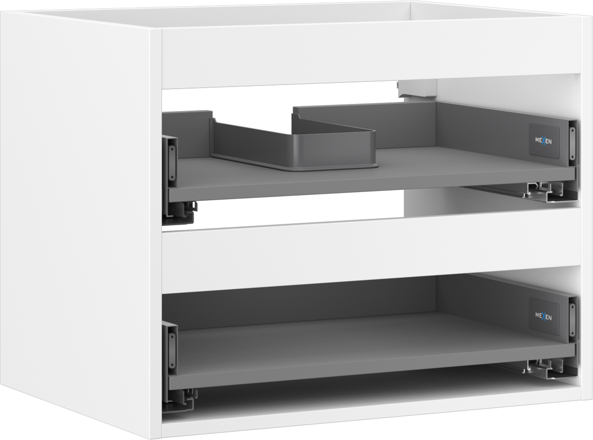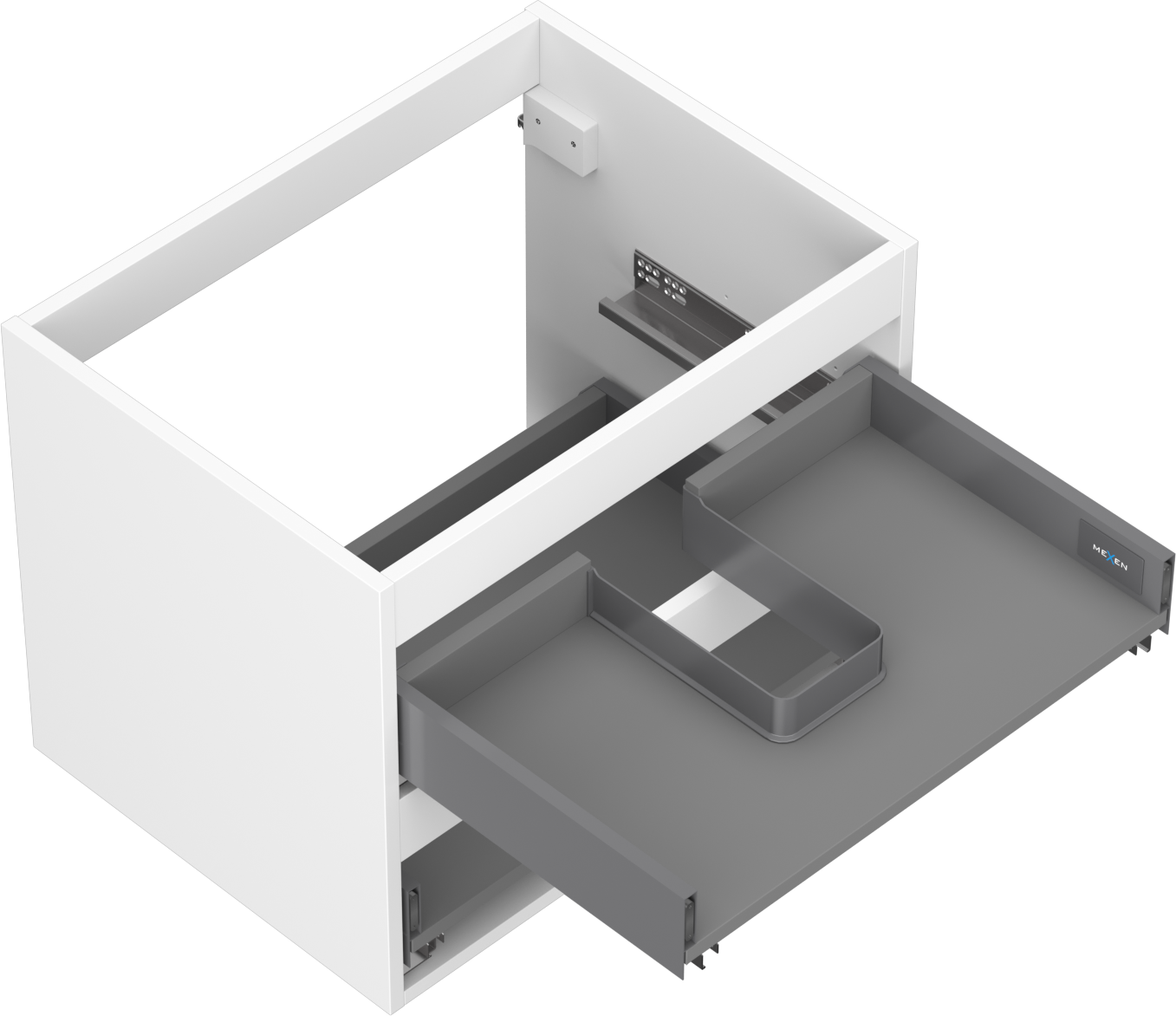 Изрезът в чекмеджето е проектиран по такъв начин, че да побере сифона, който е необходим в мивковите инсталации. Благодарение на това мебелът може да бъде монтиран напълно функционално, без да се налага отказване от пространството в чекмеджето заради инсталацията.