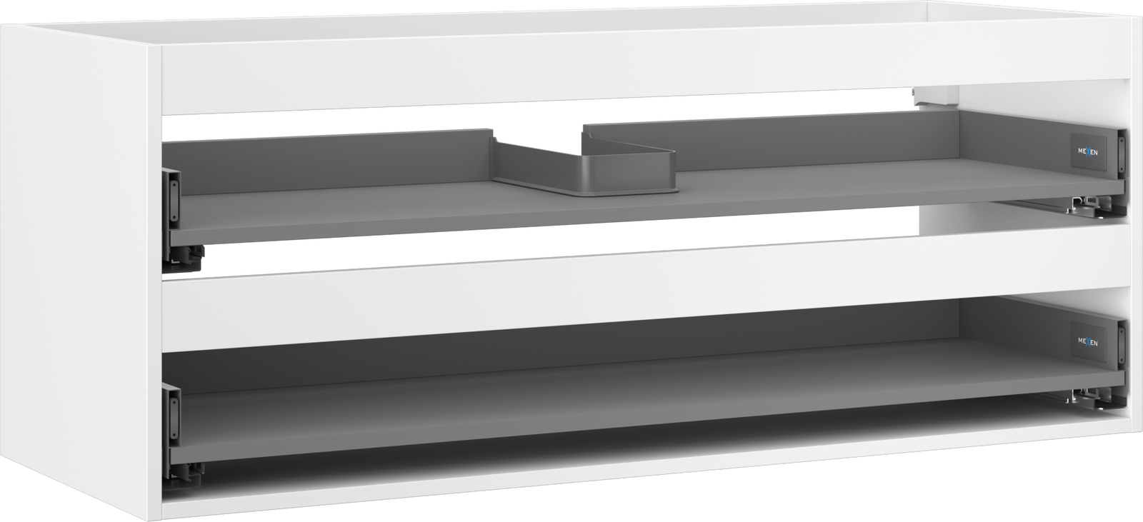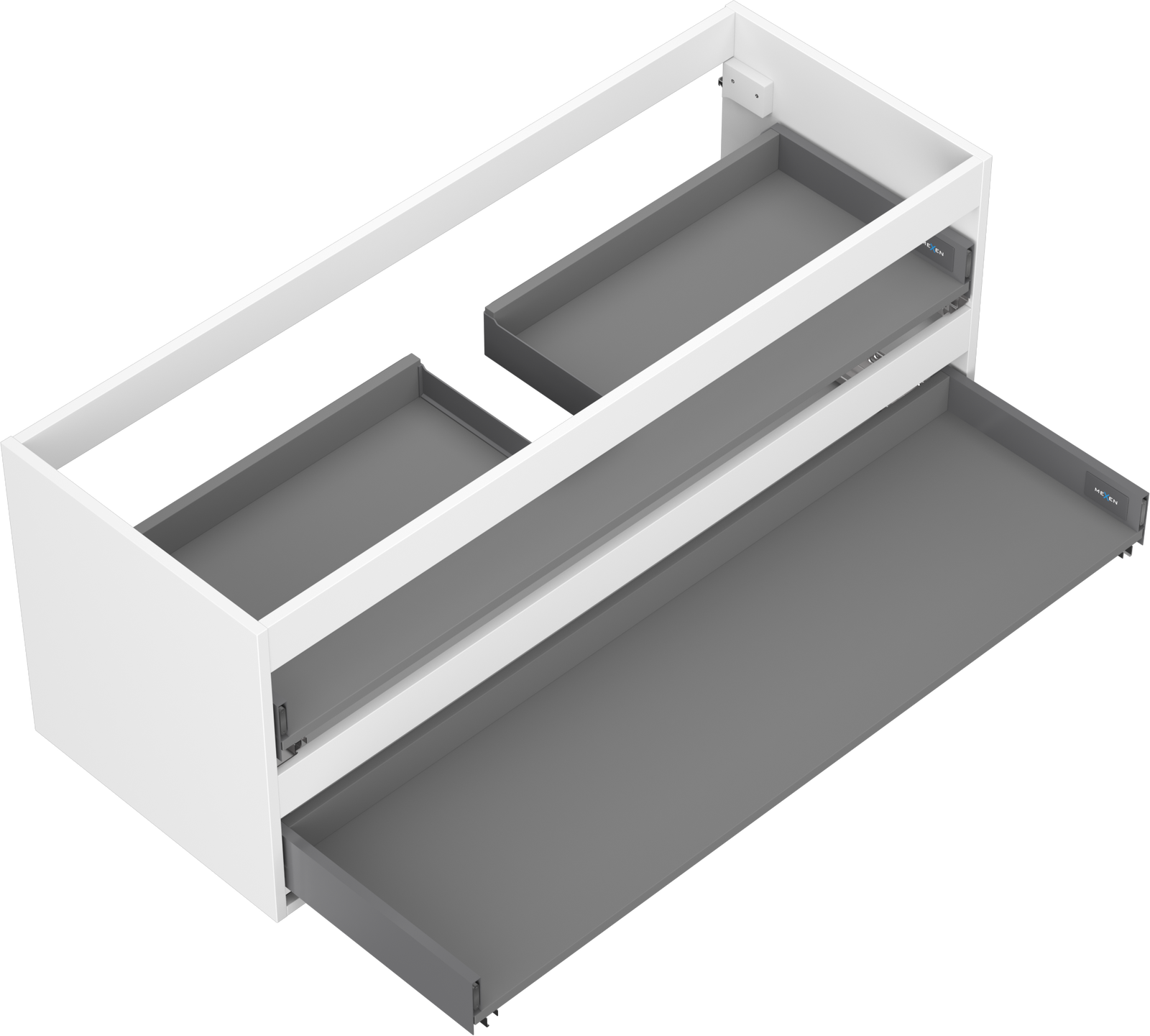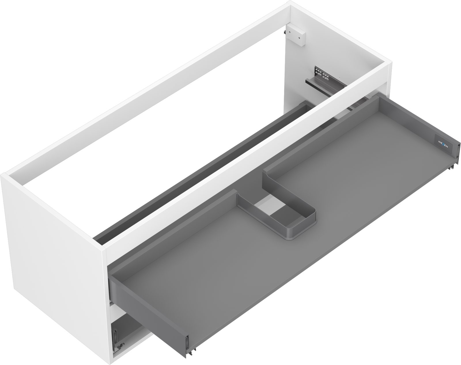 Изрезът в чекмеджето е проектиран по такъв начин, че да побере сифона, който е необходим в мивковите инсталации. Благодарение на това мебелът може да бъде монтиран напълно функционално, без да се налага отказване от пространството в чекмеджето заради инсталацията.