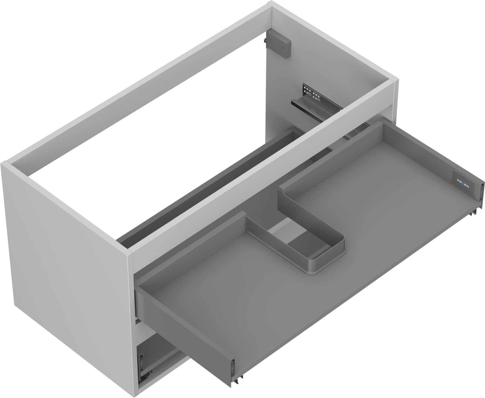 Изрезът в чекмеджето е проектиран по такъв начин, че да побере сифона, който е необходим в мивковите инсталации. Благодарение на това мебелът може да бъде монтиран напълно функционално, без да се налага отказване от пространството в чекмеджето заради инсталацията.
