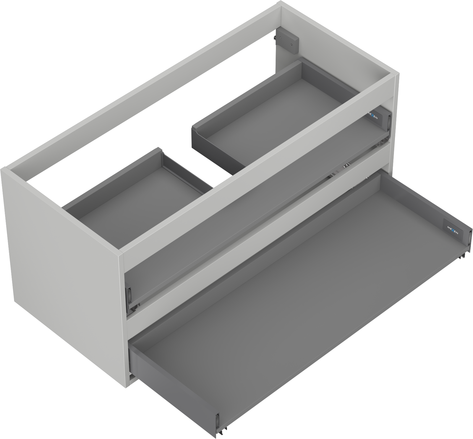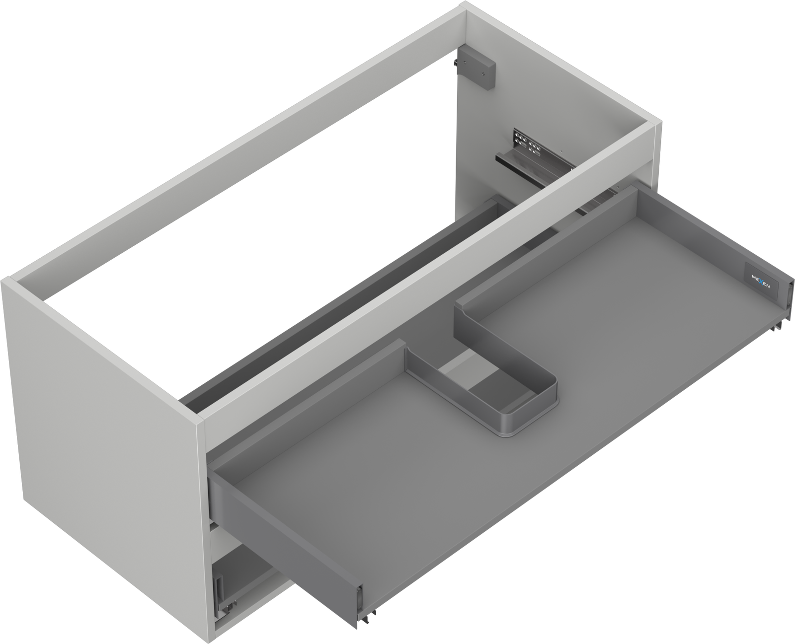 Изрезът в чекмеджето е проектиран по такъв начин, че да побере сифона, който е необходим в мивковите инсталации. Благодарение на това мебелът може да бъде монтиран напълно функционално, без да се налага отказване от пространството в чекмеджето заради инсталацията.