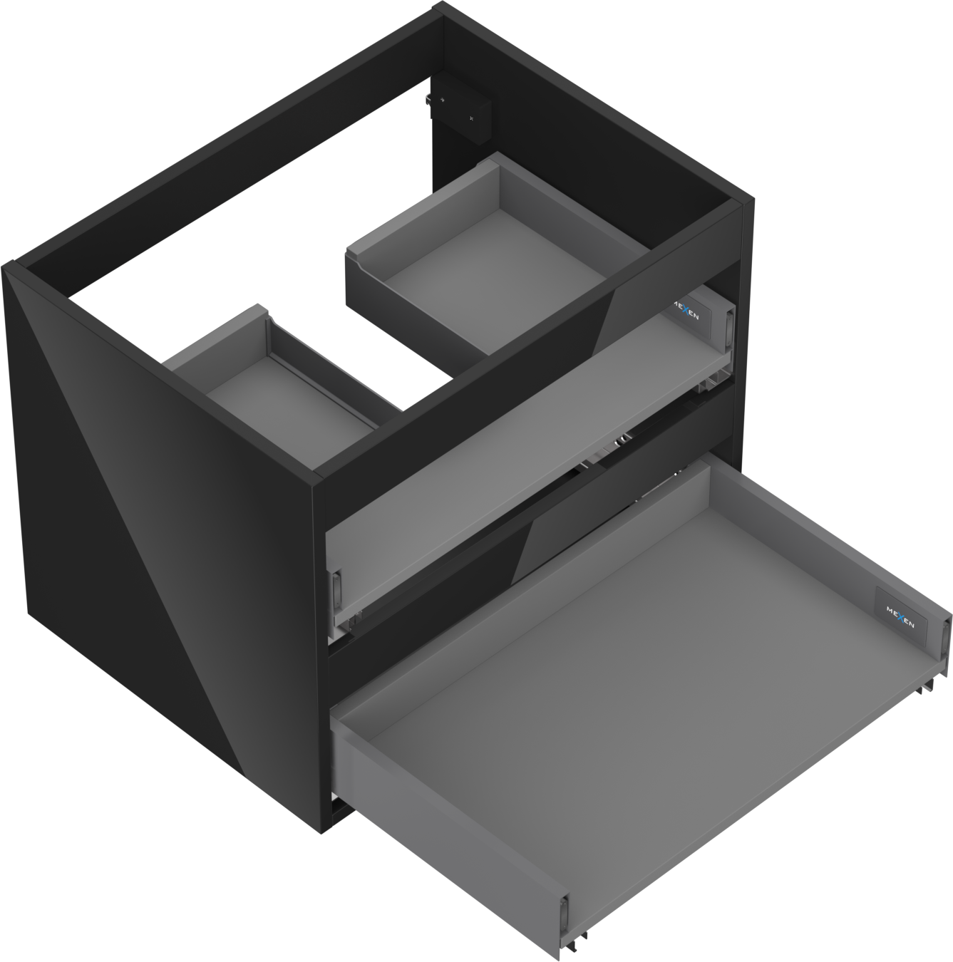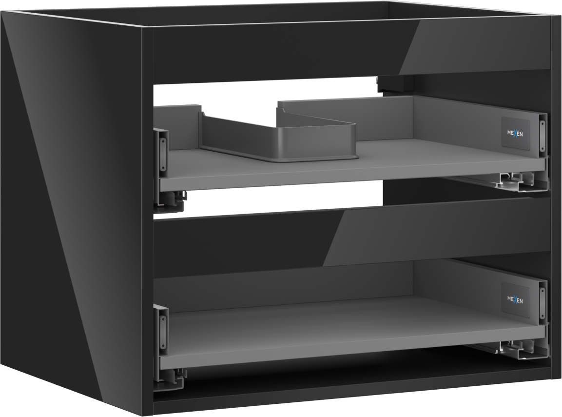 Mexen Box-A корпус шкаф за мивка 60 см, 2 чекмеджета, черен гланц - 91AX0-0600-470-2-70