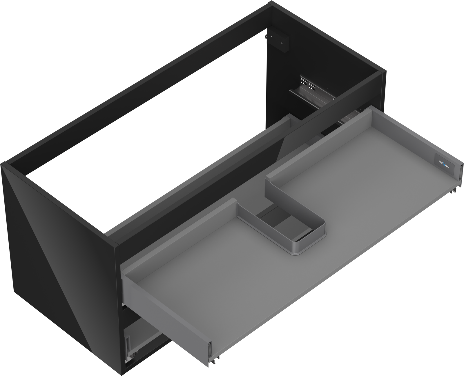 Изрезът в чекмеджето е проектиран по такъв начин, че да побере сифона, който е необходим в мивковите инсталации. Благодарение на това мебелът може да бъде монтиран напълно функционално, без да се налага отказване от пространството в чекмеджето заради инсталацията.
