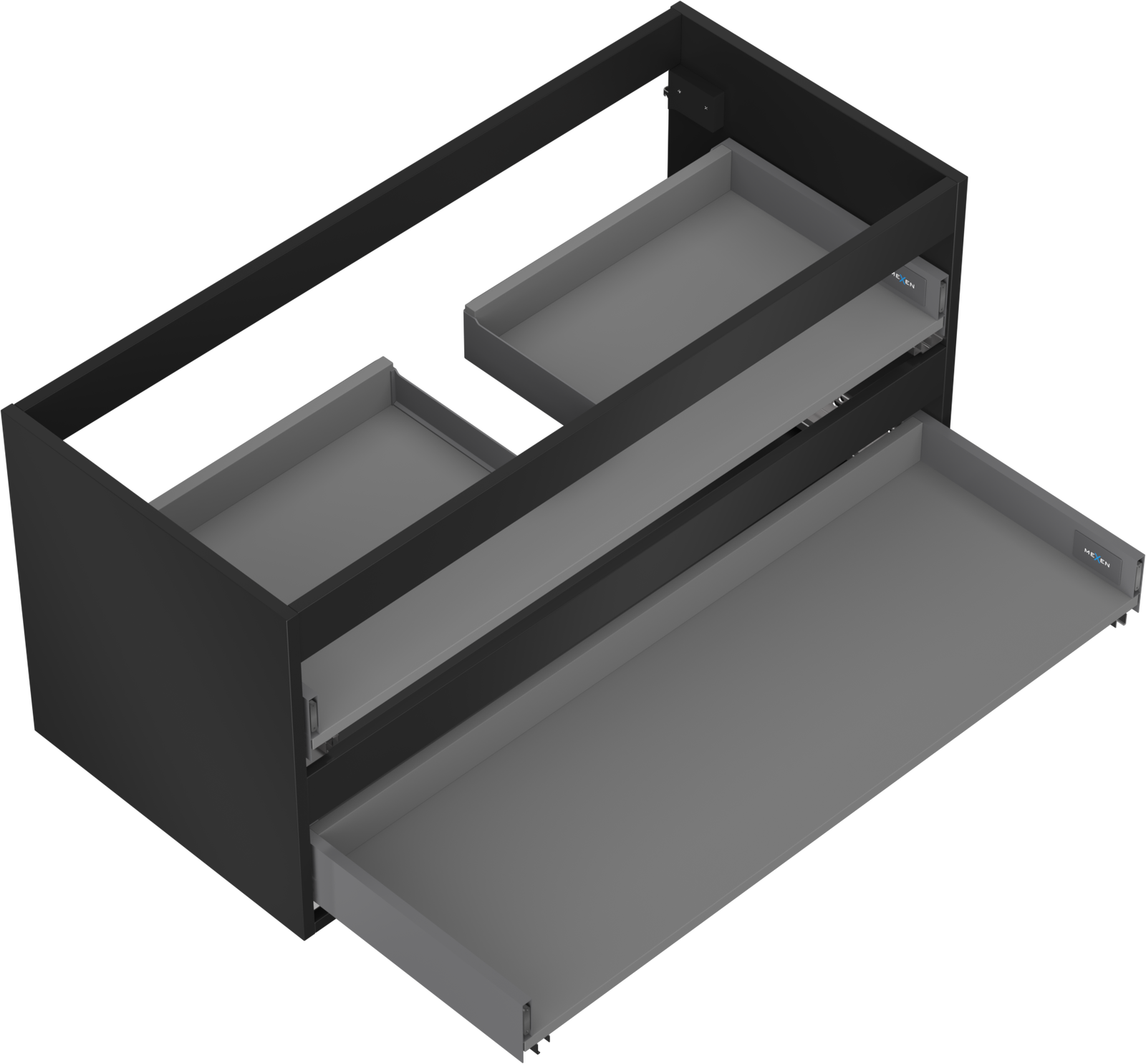 Изрезът в чекмеджето е проектиран по такъв начин, че да побере сифона, който е необходим в мивковите инсталации. Благодарение на това мебелът може да бъде монтиран напълно функционално, без да се налага отказване от пространството в чекмеджето заради инсталацията.