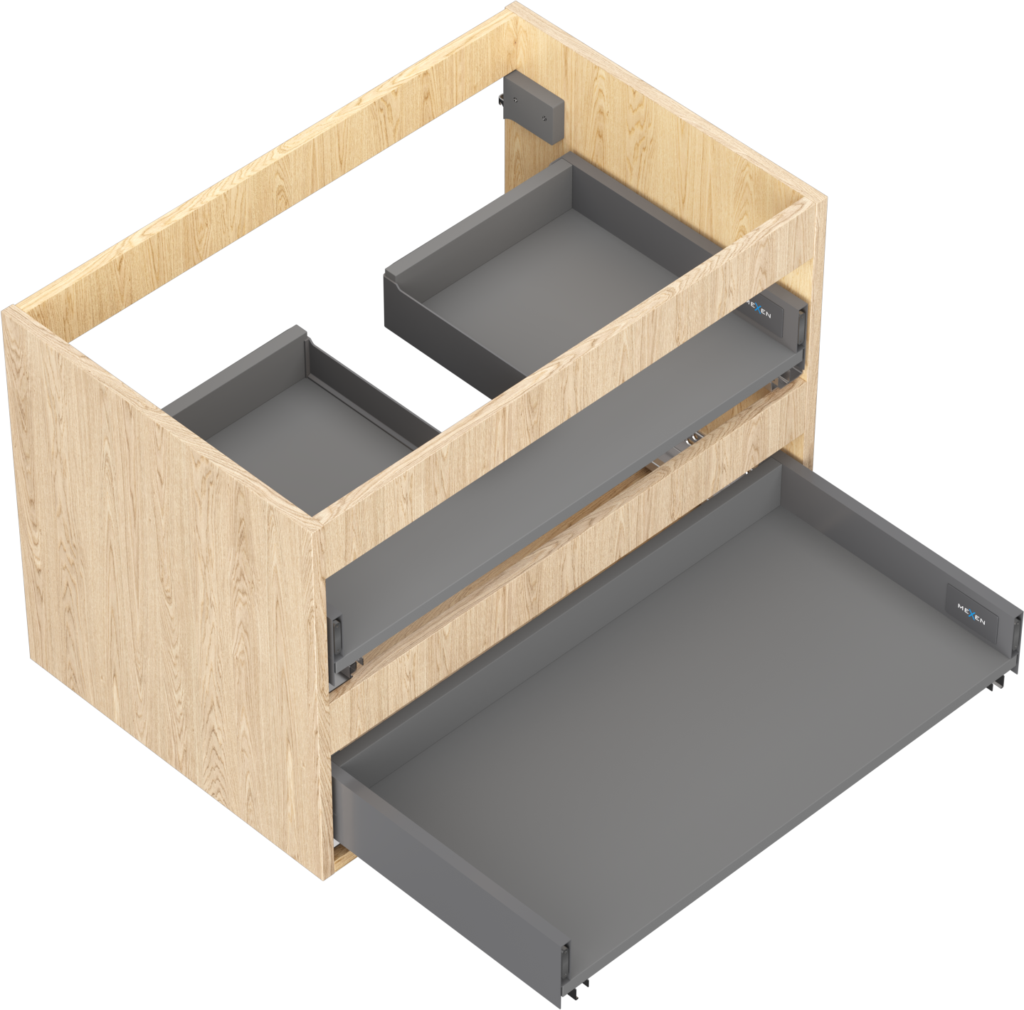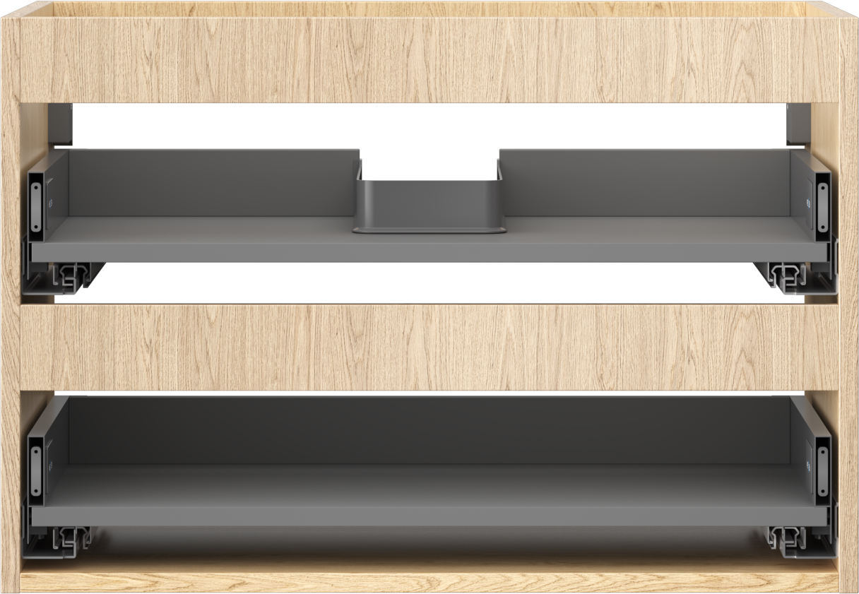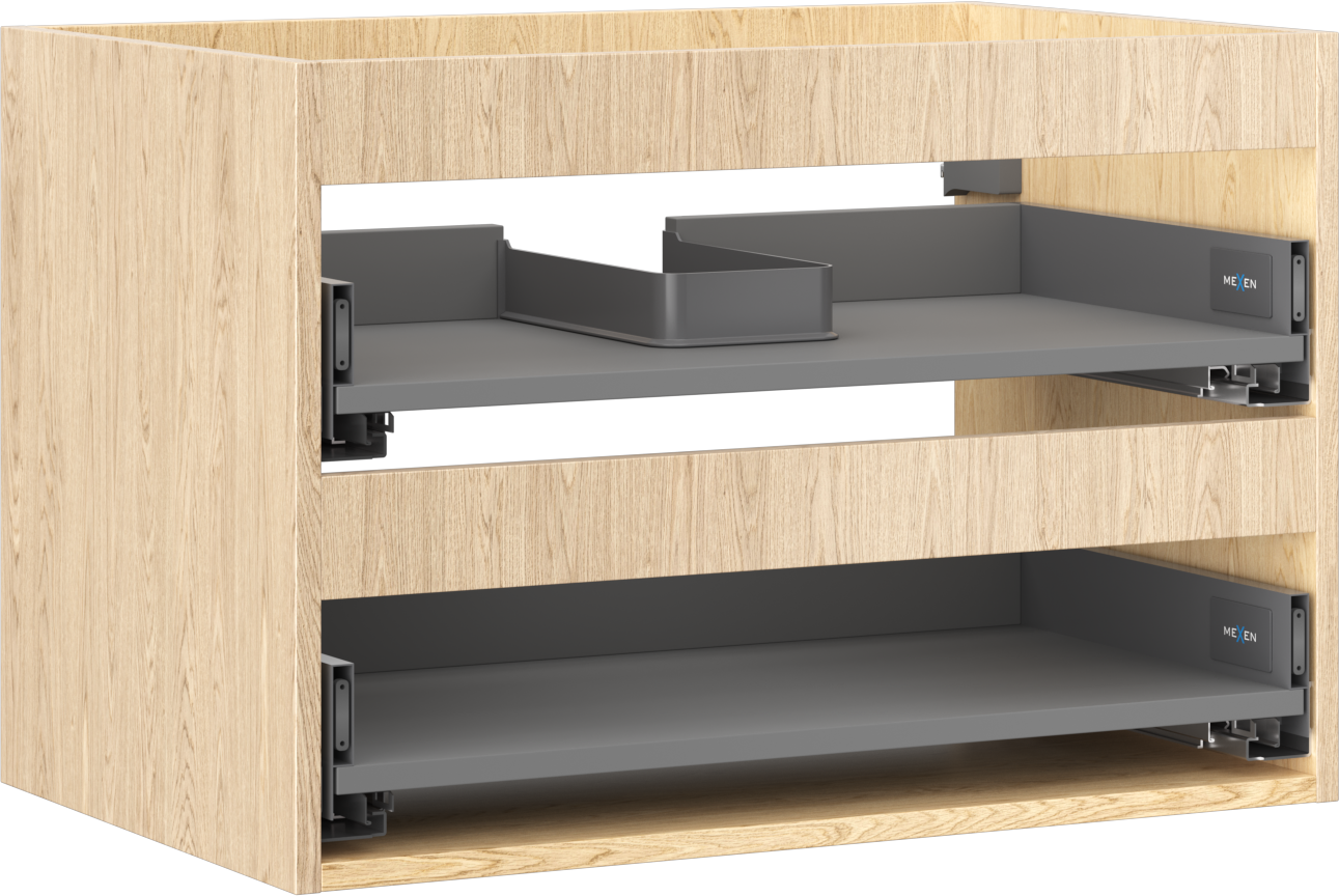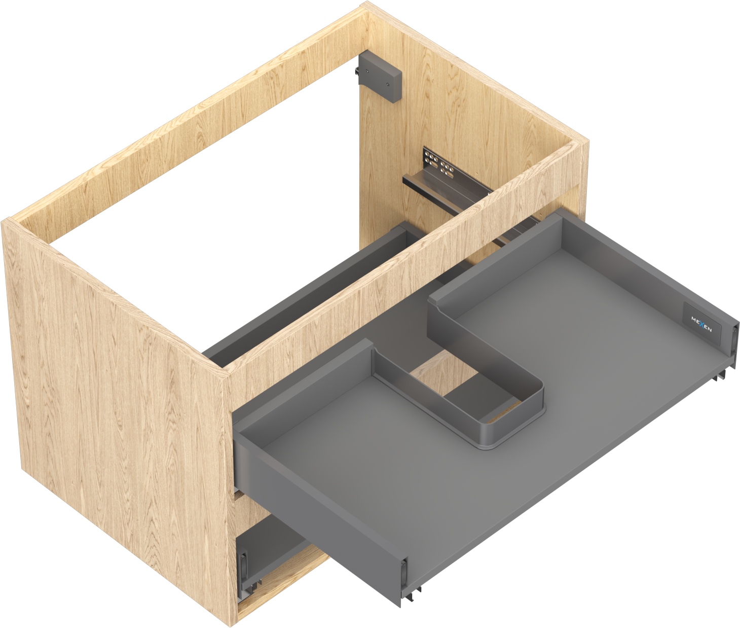 Изрезът в чекмеджето е проектиран по такъв начин, че да побере сифона, който е необходим в мивковите инсталации. Благодарение на това мебелът може да бъде монтиран напълно функционално, без да се налага отказване от пространството в чекмеджето заради инсталацията.