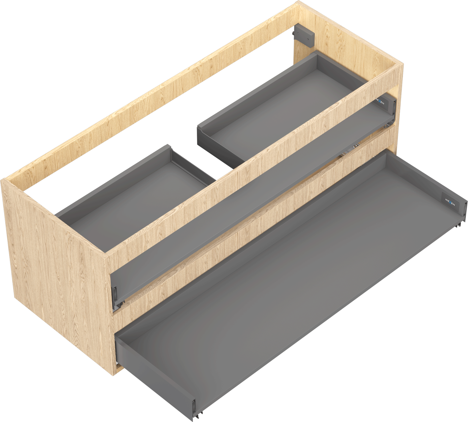 Изрезът в чекмеджето е проектиран по такъв начин, че да побере сифона, който е необходим в мивковите инсталации. Благодарение на това мебелът може да бъде монтиран напълно функционално, без да се налага отказване от пространството в чекмеджето заради инсталацията.