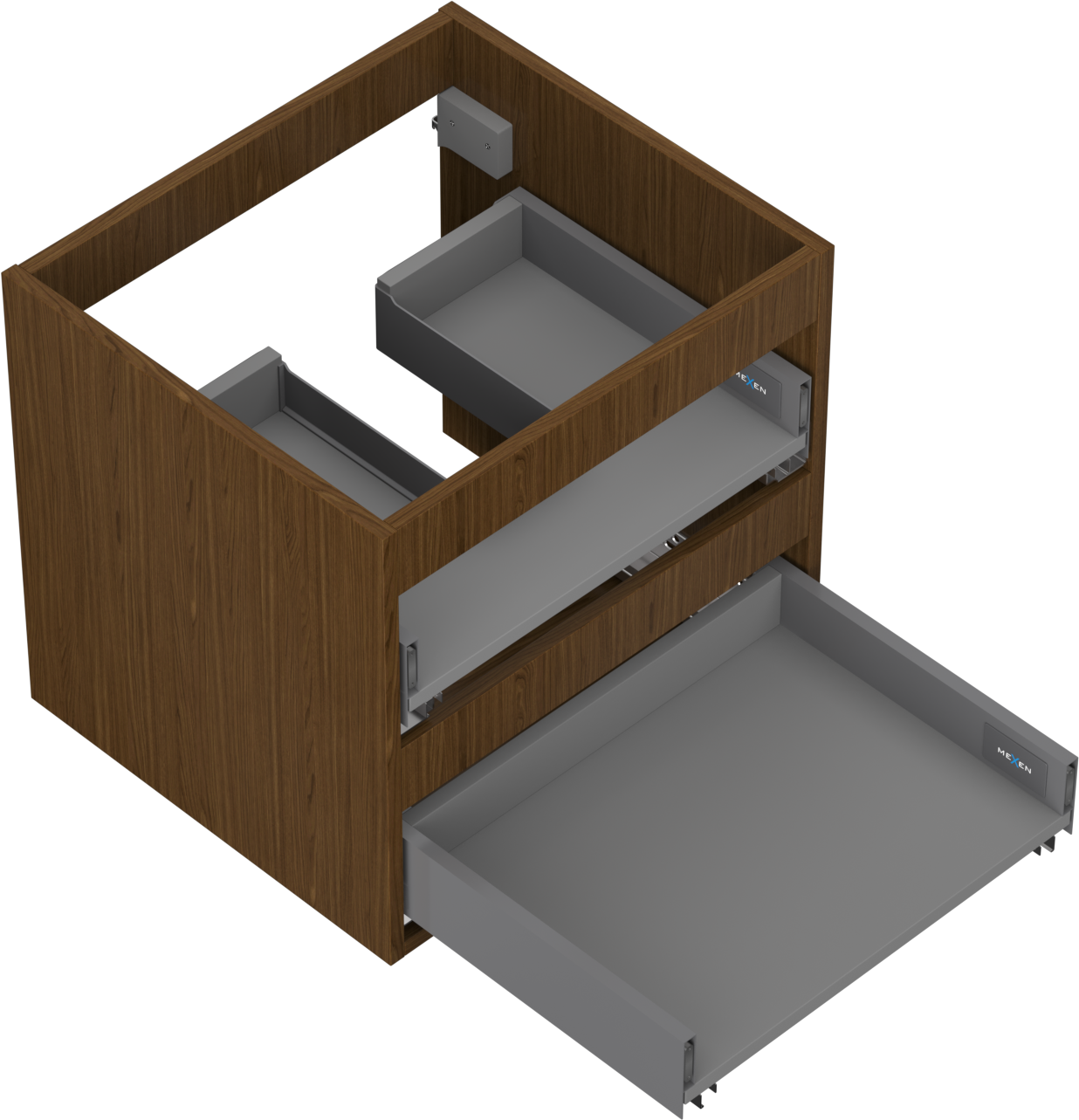 Изрезът в чекмеджето е проектиран по такъв начин, че да побере сифона, който е необходим в мивковите инсталации. Благодарение на това мебелът може да бъде монтиран напълно функционално, без да се налага отказване от пространството в чекмеджето заради инсталацията.