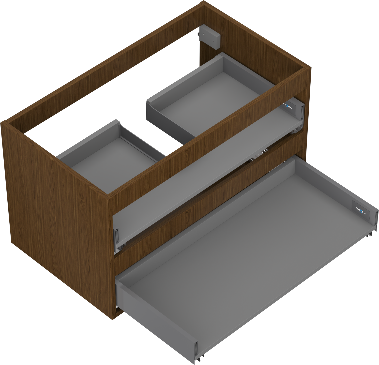 Изрезът в чекмеджето е проектиран по такъв начин, че да побере сифона, който е необходим в мивковите инсталации. Благодарение на това мебелът може да бъде монтиран напълно функционално, без да се налага отказване от пространството в чекмеджето заради инсталацията.