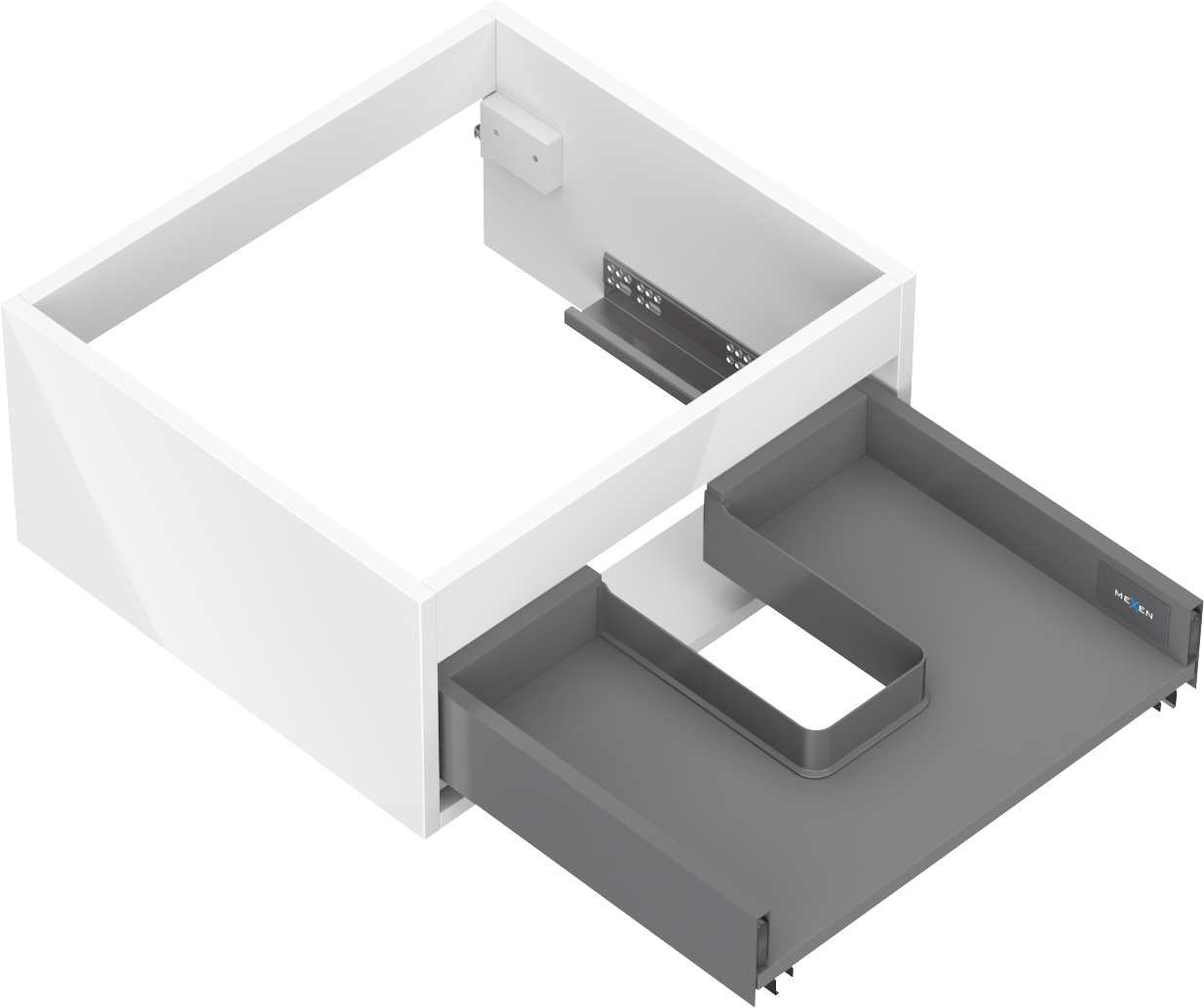 Изрезът в чекмеджето е проектиран по такъв начин, че да побере сифона, който е необходим в мивковите инсталации. Благодарение на това мебелът може да бъде монтиран напълно функционално, без да се налага отказване от пространството в чекмеджето заради инсталацията.