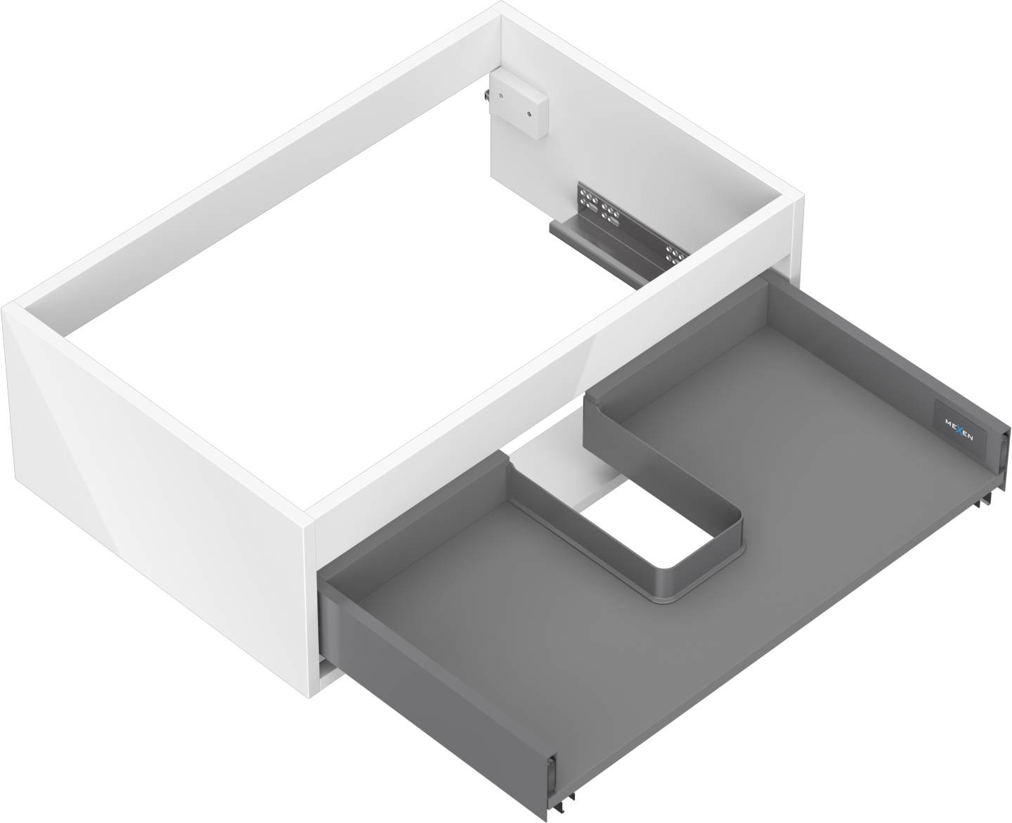 Изрезът в чекмеджето е проектиран по такъв начин, че да побере сифона, който е необходим в мивковите инсталации. Благодарение на това мебелът може да бъде монтиран напълно функционално, без да се налага отказване от пространството в чекмеджето заради инсталацията.