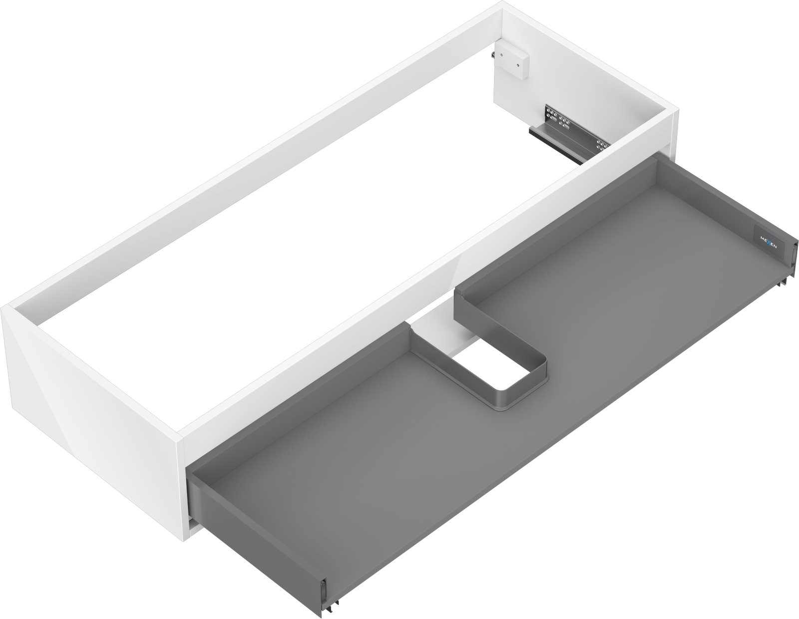 Изрезът в чекмеджето е проектиран по такъв начин, че да побере сифона, който е необходим в мивковите инсталации. Благодарение на това мебелът може да бъде монтиран напълно функционално, без да се налага отказване от пространството в чекмеджето заради инсталацията.
