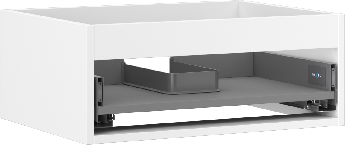 Изрезът в чекмеджето е проектиран по такъв начин, че да побере сифона, който е необходим в мивковите инсталации. Благодарение на това мебелът може да бъде монтиран напълно функционално, без да се налага отказване от пространството в чекмеджето заради инсталацията.