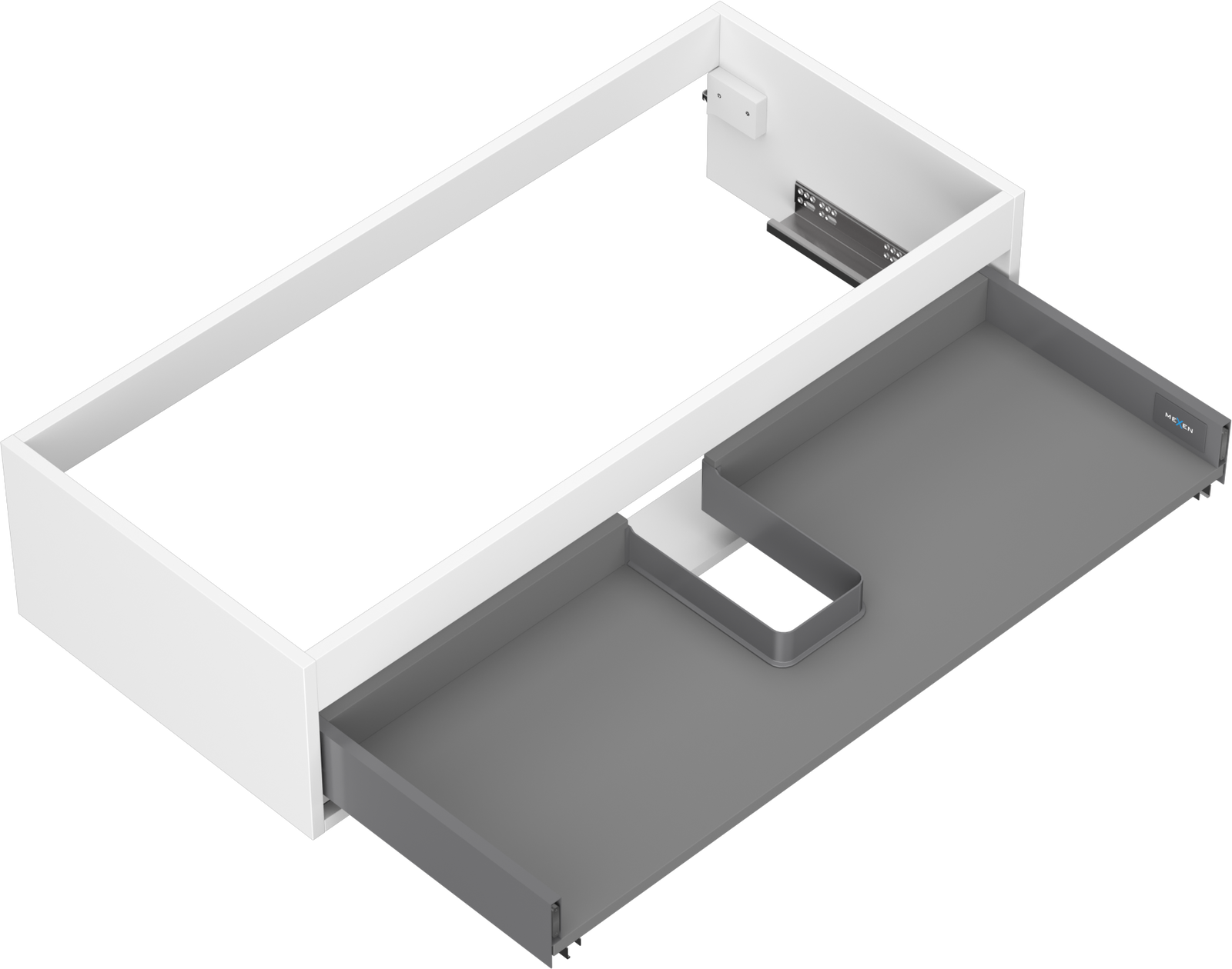 Изрезът в чекмеджето е проектиран по такъв начин, че да побере сифона, който е необходим в мивковите инсталации. Благодарение на това мебелът може да бъде монтиран напълно функционално, без да се налага отказване от пространството в чекмеджето заради инсталацията.