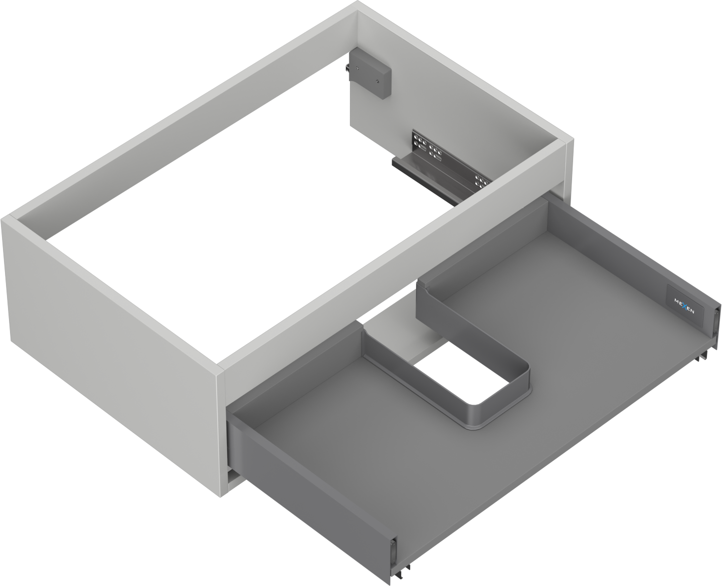 Изрезът в чекмеджето е проектиран по такъв начин, че да побере сифона, който е необходим в мивковите инсталации. Благодарение на това мебелът може да бъде монтиран напълно функционално, без да се налага отказване от пространството в чекмеджето заради инсталацията.
