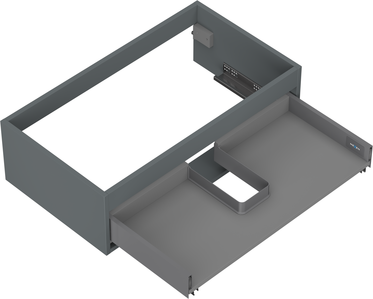Изрезът в чекмеджето е проектиран по такъв начин, че да побере сифона, който е необходим в мивковите инсталации. Благодарение на това мебелът може да бъде монтиран напълно функционално, без да се налага отказване от пространството в чекмеджето заради инсталацията.