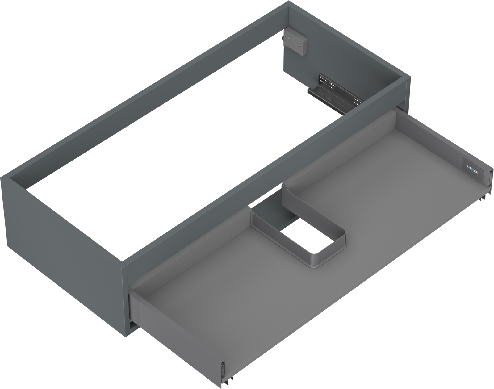 Изрезът в чекмеджето е проектиран по такъв начин, че да побере сифона, който е необходим в мивковите инсталации. Благодарение на това мебелът може да бъде монтиран напълно функционално, без да се налага отказване от пространството в чекмеджето заради инсталацията.