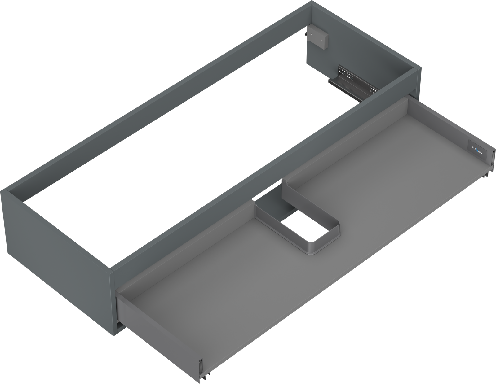 Изрезът в чекмеджето е проектиран по такъв начин, че да побере сифона, който е необходим в мивковите инсталации. Благодарение на това мебелът може да бъде монтиран напълно функционално, без да се налага отказване от пространството в чекмеджето заради инсталацията.