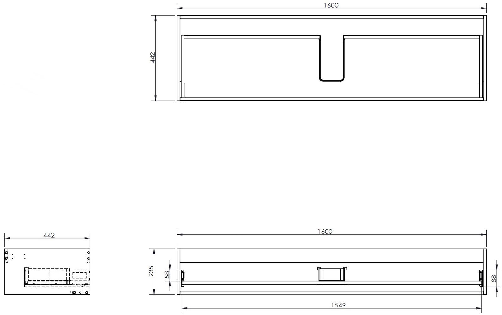 Изрезът в чекмеджето е проектиран по такъв начин, че да побере сифона, който е необходим в мивковите инсталации. Благодарение на това мебелът може да бъде монтиран напълно функционално, без да се налага отказване от пространството в чекмеджето заради инсталацията.