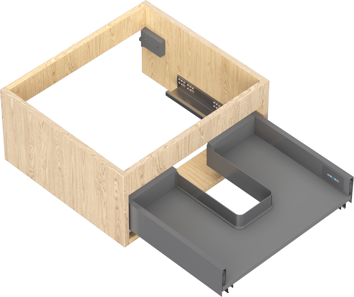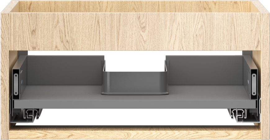 Изрезът в чекмеджето е проектиран по такъв начин, че да побере сифона, който е необходим в мивковите инсталации. Благодарение на това мебелът може да бъде монтиран напълно функционално, без да се налага отказване от пространството в чекмеджето заради инсталацията.