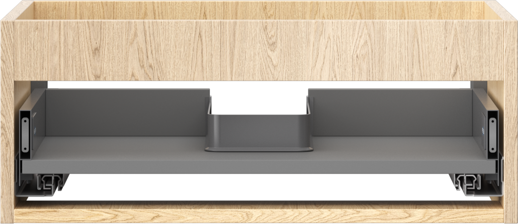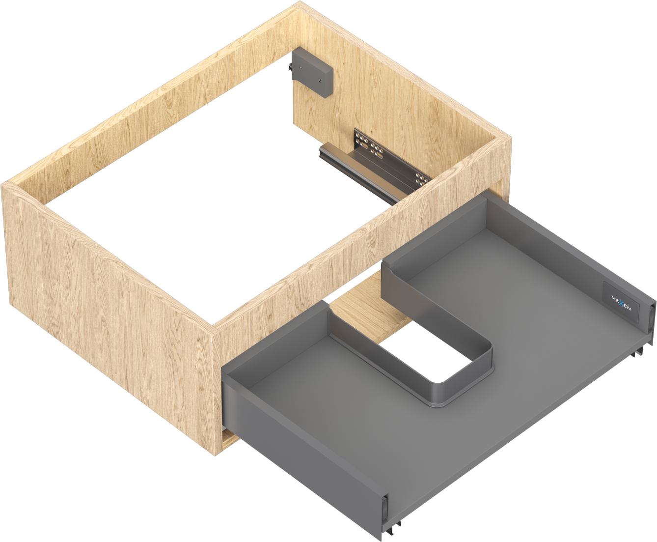Изрезът в чекмеджето е проектиран по такъв начин, че да побере сифона, който е необходим в мивковите инсталации. Благодарение на това мебелът може да бъде монтиран напълно функционално, без да се налага отказване от пространството в чекмеджето заради инсталацията.