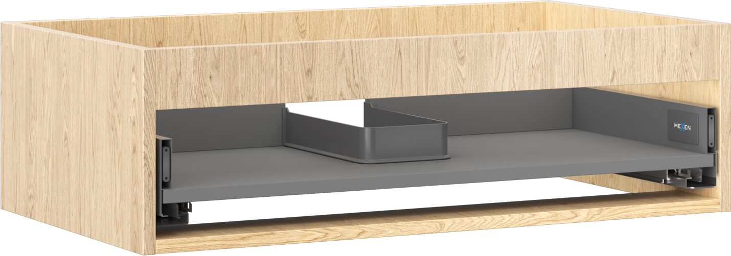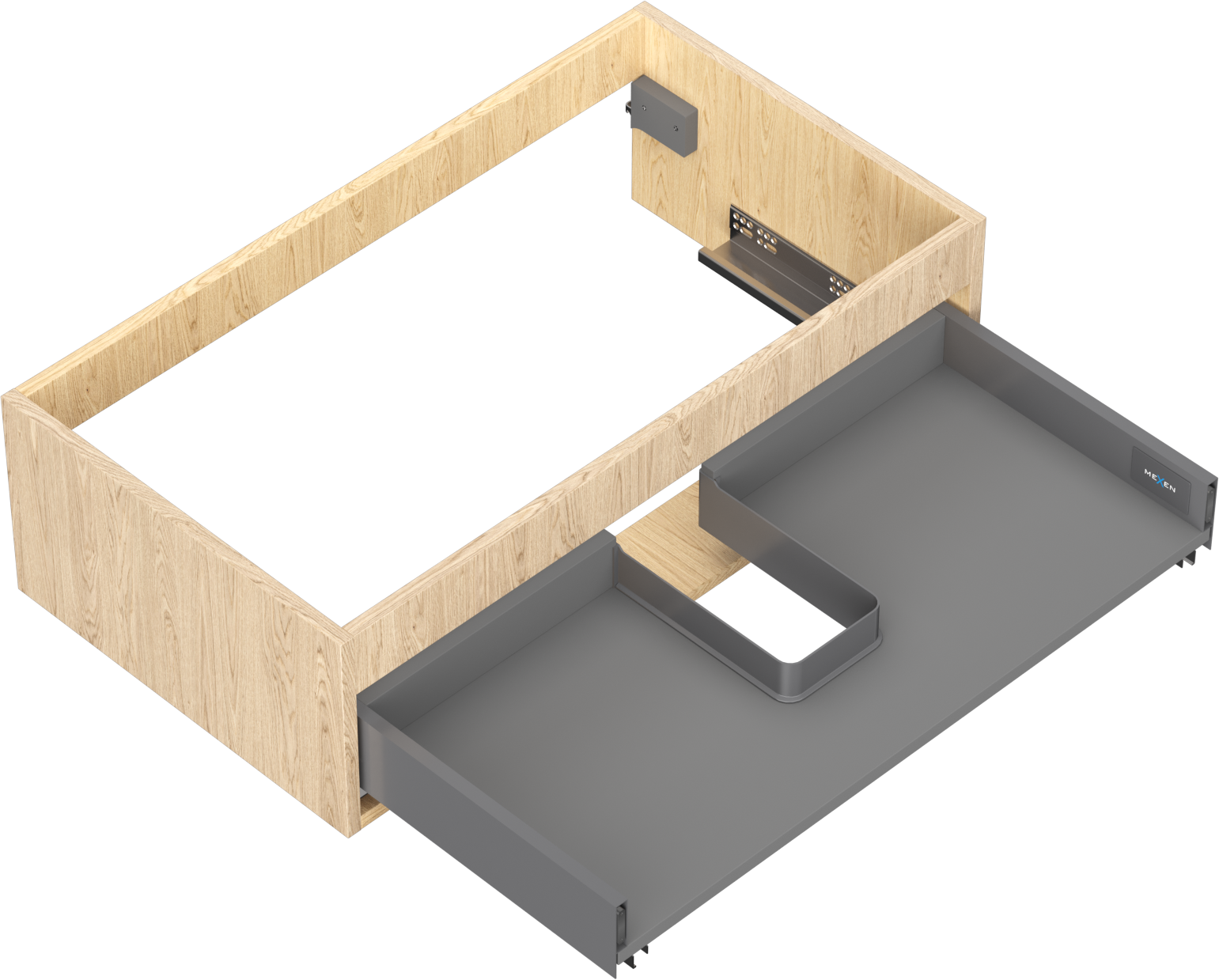Изрезът в чекмеджето е проектиран по такъв начин, че да побере сифона, който е необходим в мивковите инсталации. Благодарение на това мебелът може да бъде монтиран напълно функционално, без да се налага отказване от пространството в чекмеджето заради инсталацията.