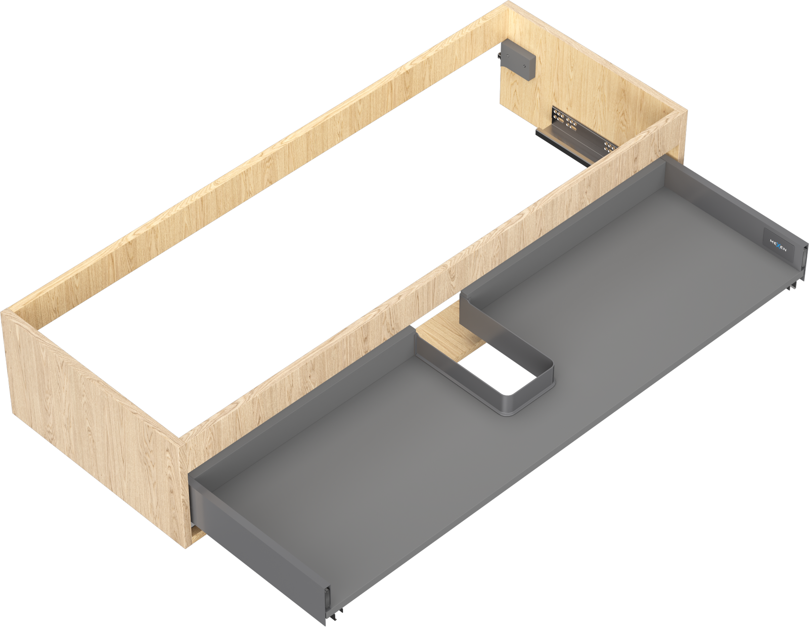 Изрезът в чекмеджето е проектиран по такъв начин, че да побере сифона, който е необходим в мивковите инсталации. Благодарение на това мебелът може да бъде монтиран напълно функционално, без да се налага отказване от пространството в чекмеджето заради инсталацията.