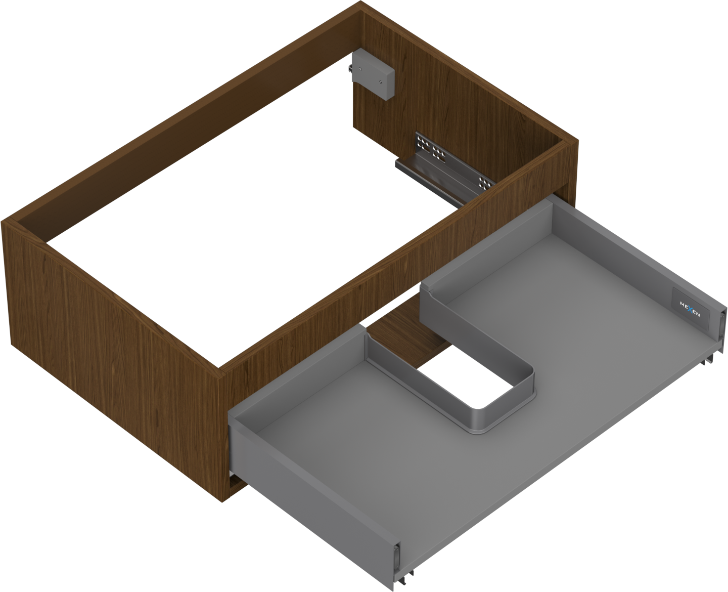 Изрезът в чекмеджето е проектиран по такъв начин, че да побере сифона, който е необходим в мивковите инсталации. Благодарение на това мебелът може да бъде монтиран напълно функционално, без да се налага отказване от пространството в чекмеджето заради инсталацията.