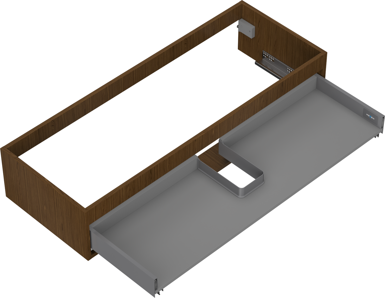 Изрезът в чекмеджето е проектиран по такъв начин, че да побере сифона, който е необходим в мивковите инсталации. Благодарение на това мебелът може да бъде монтиран напълно функционално, без да се налага отказване от пространството в чекмеджето заради инсталацията.