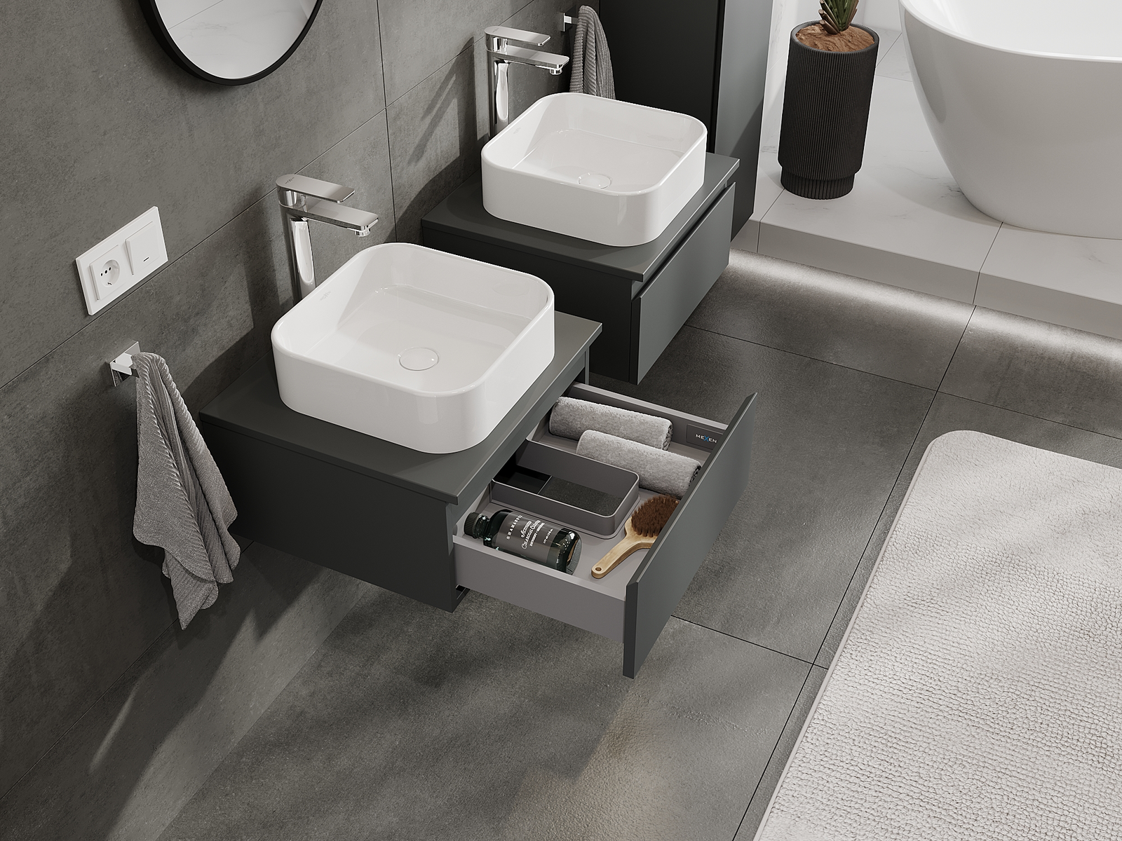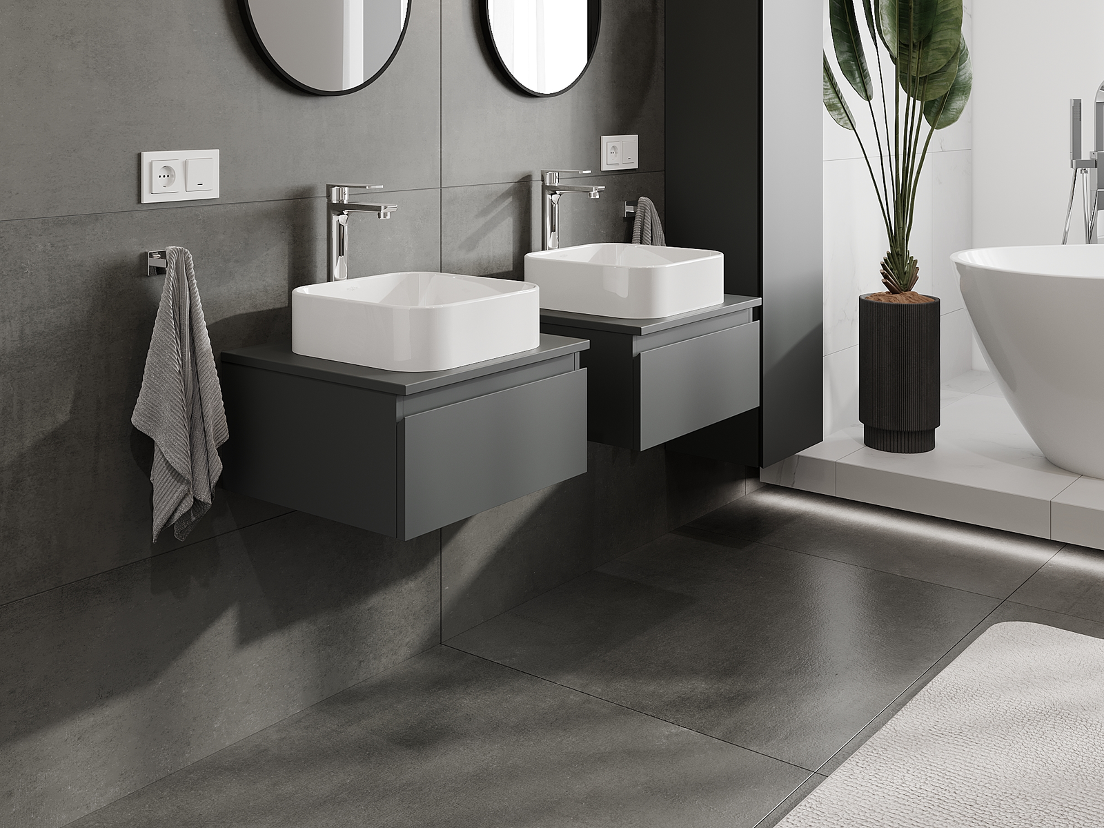 Нашите модулни мебели за баня могат да се комбинират в различни цветови конфигурации, което позволява пълна персонализация. Може да се избере както външният вид, така и функциите на отделните елементи, което позволява съчетаване на мебелите със собствените стилови и функционални предпочитания.