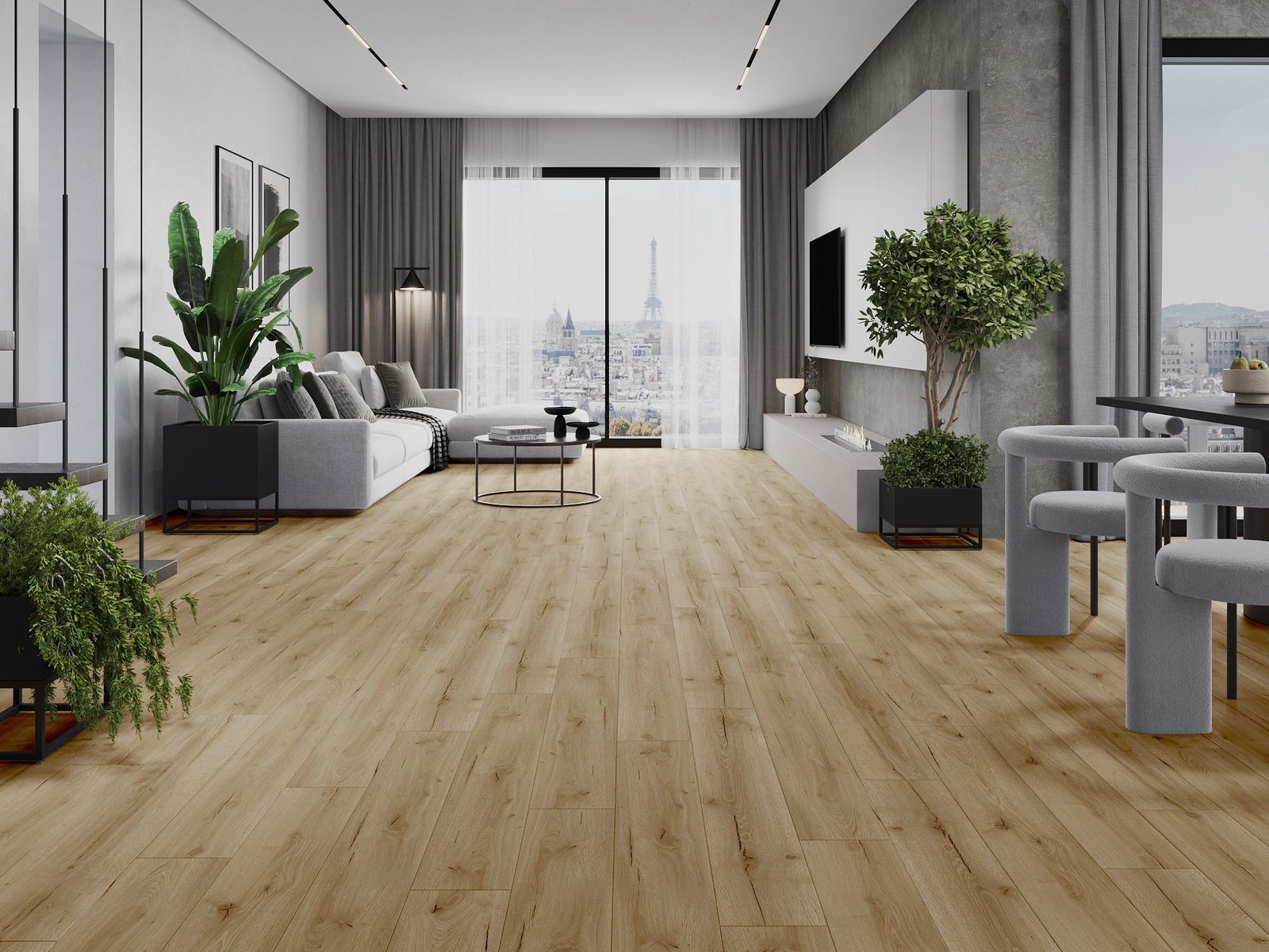 Панелите имат 4-странна фуга - всяка страна е обработена така, че при нареждане да се образува V-образно съединение. Този дизайн придава на пода по-изразена структура, което му добавя дълбочина и естетически характер. Този ефект е особено ценен в съвременните интериори, където детайлите подчертават уникалния изглед на вътрешността.