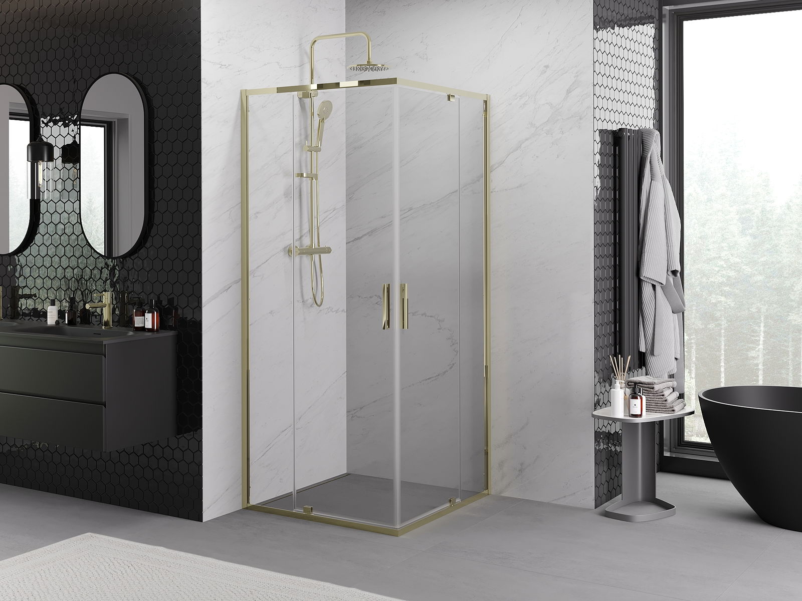 Mexen Exo квадратна душ кабина с отваряеми врати 80 x 80 см, прозрачна, златна - 8110-080-080-50-00