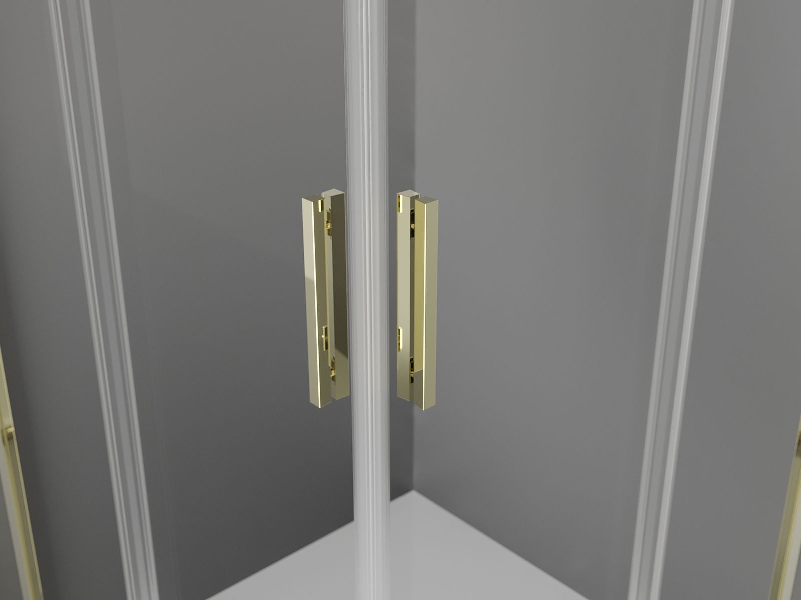 Mexen Exo квадратна душ кабина с панти 90 x 90 см, прозрачна, златиста