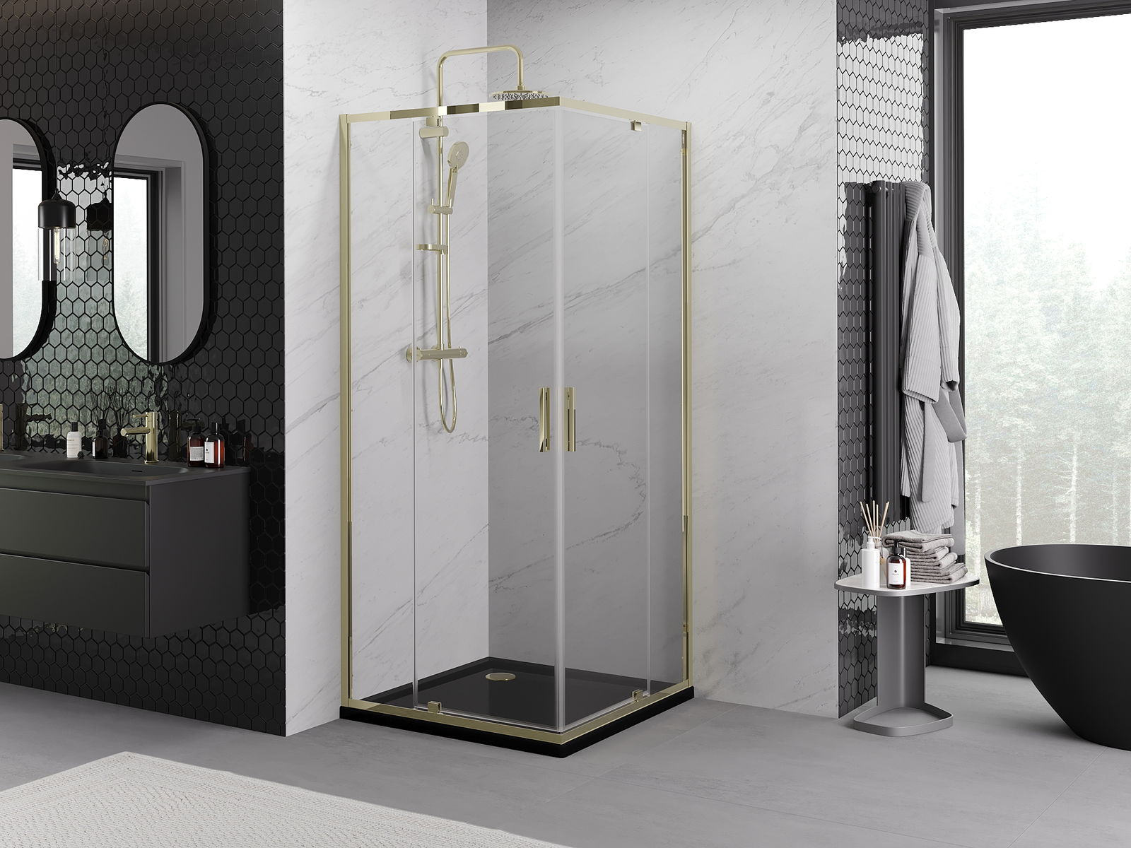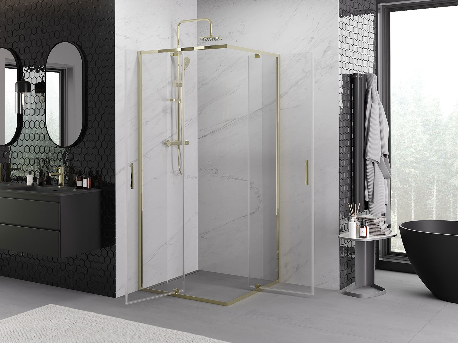 Mexen Exo квадратна душ кабина с отваряща се врата 100 x 100 см, прозрачна, златна - 8110-100-100-50-00