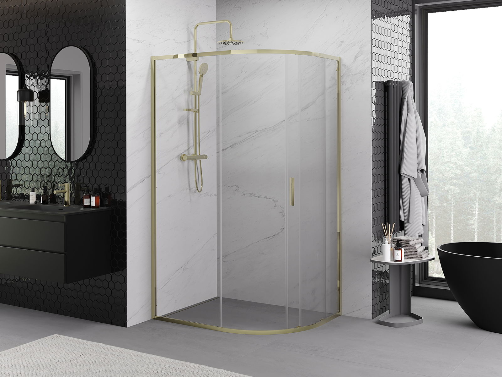 Плъзгащите се врати се движат по специални водачи и не изискват допълнително пространство, за да се отворят, поради което са подходящи за по-малки бани. Благодарение на двойните ролки с метално тяло, движението им е гладко.