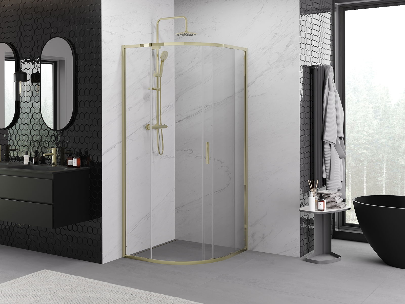 Mexen Exo полукръгла плъзгаща се душ кабина 100 x 100 см, прозрачна, златна - 8131-100-100-50-00